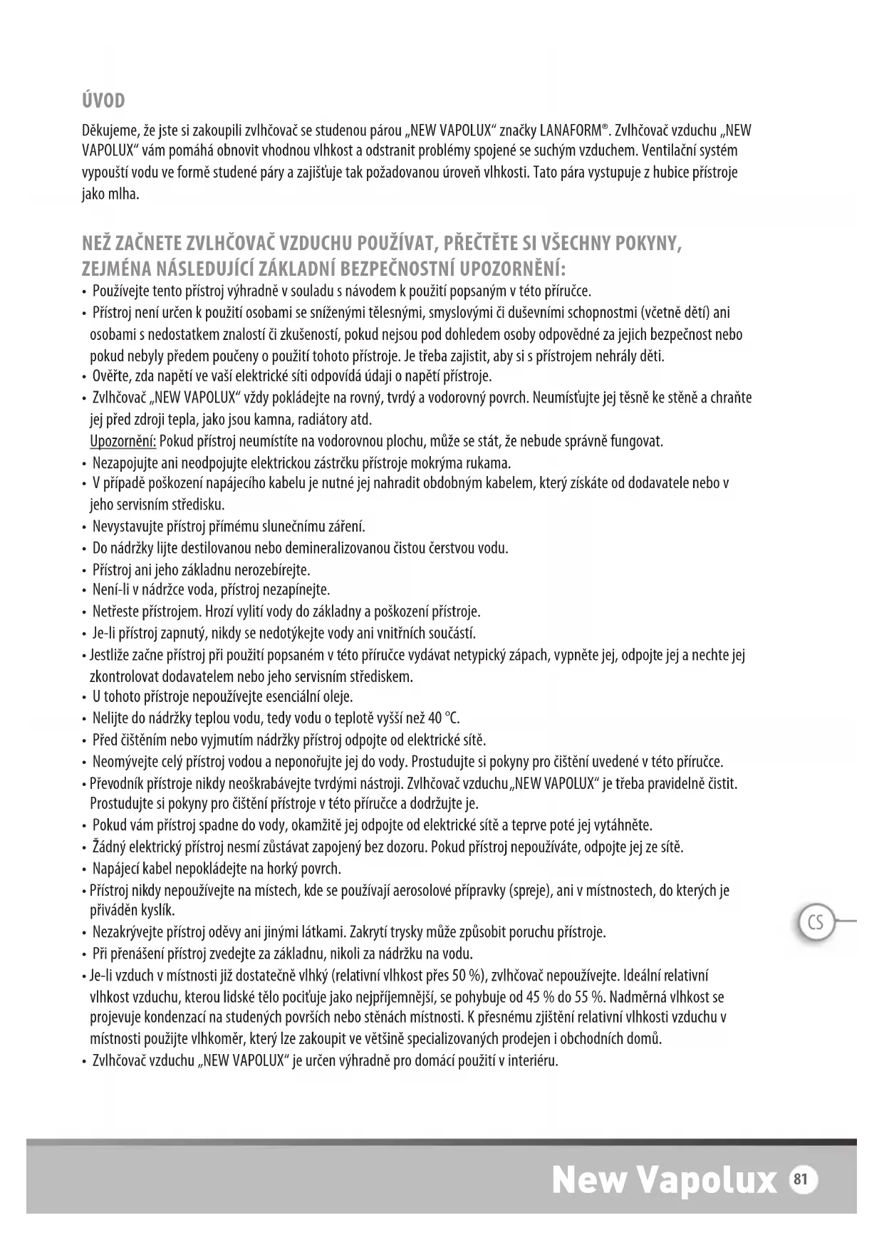New Vapolux - Zvlhčovač vzduchu LANAFORM - Bezplatný návod k obsluze