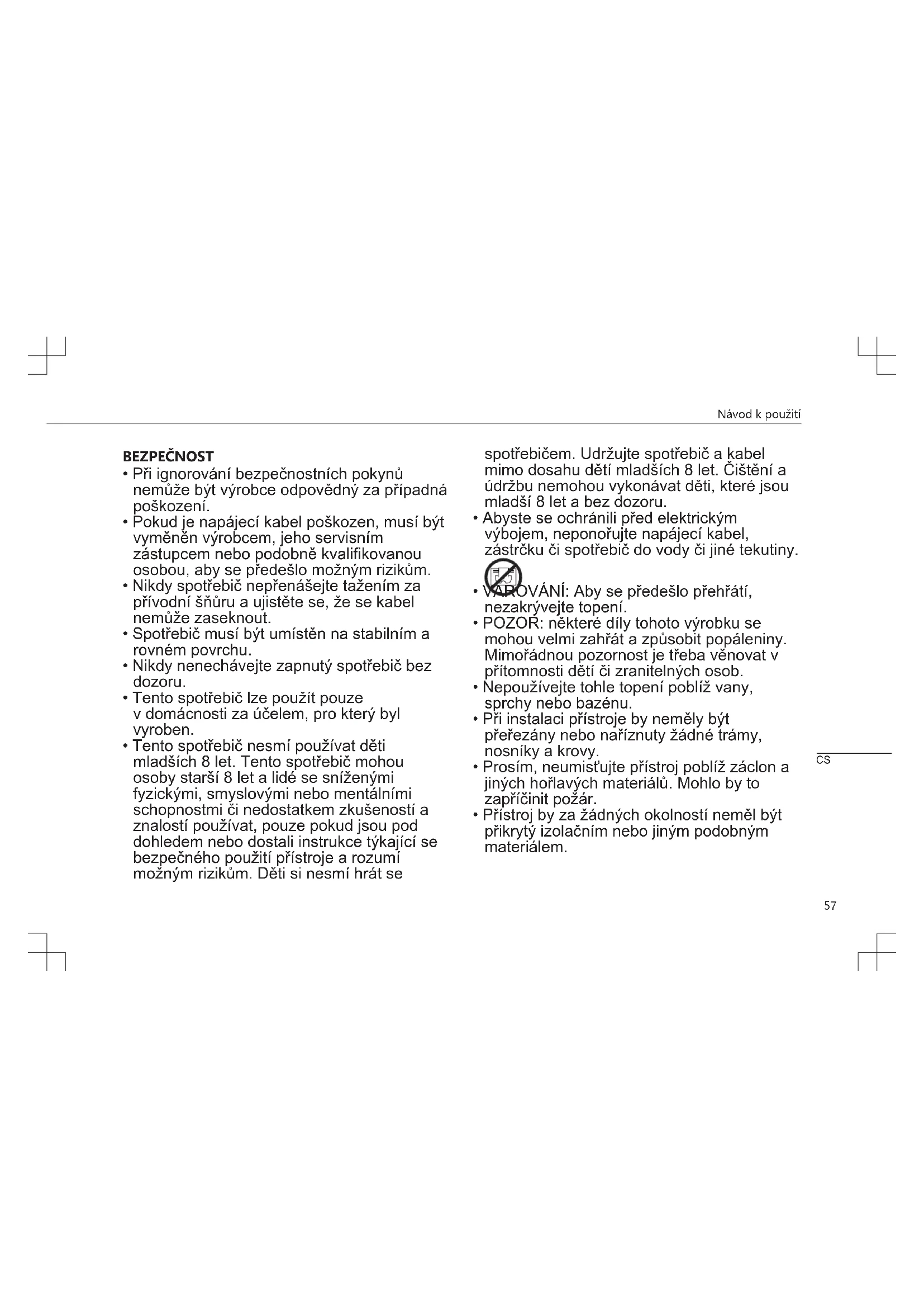 - Přístroj by za žádných okolností neměl být přikrytý izolačním nebo jiným podobným materiálem. CSNávod k použití