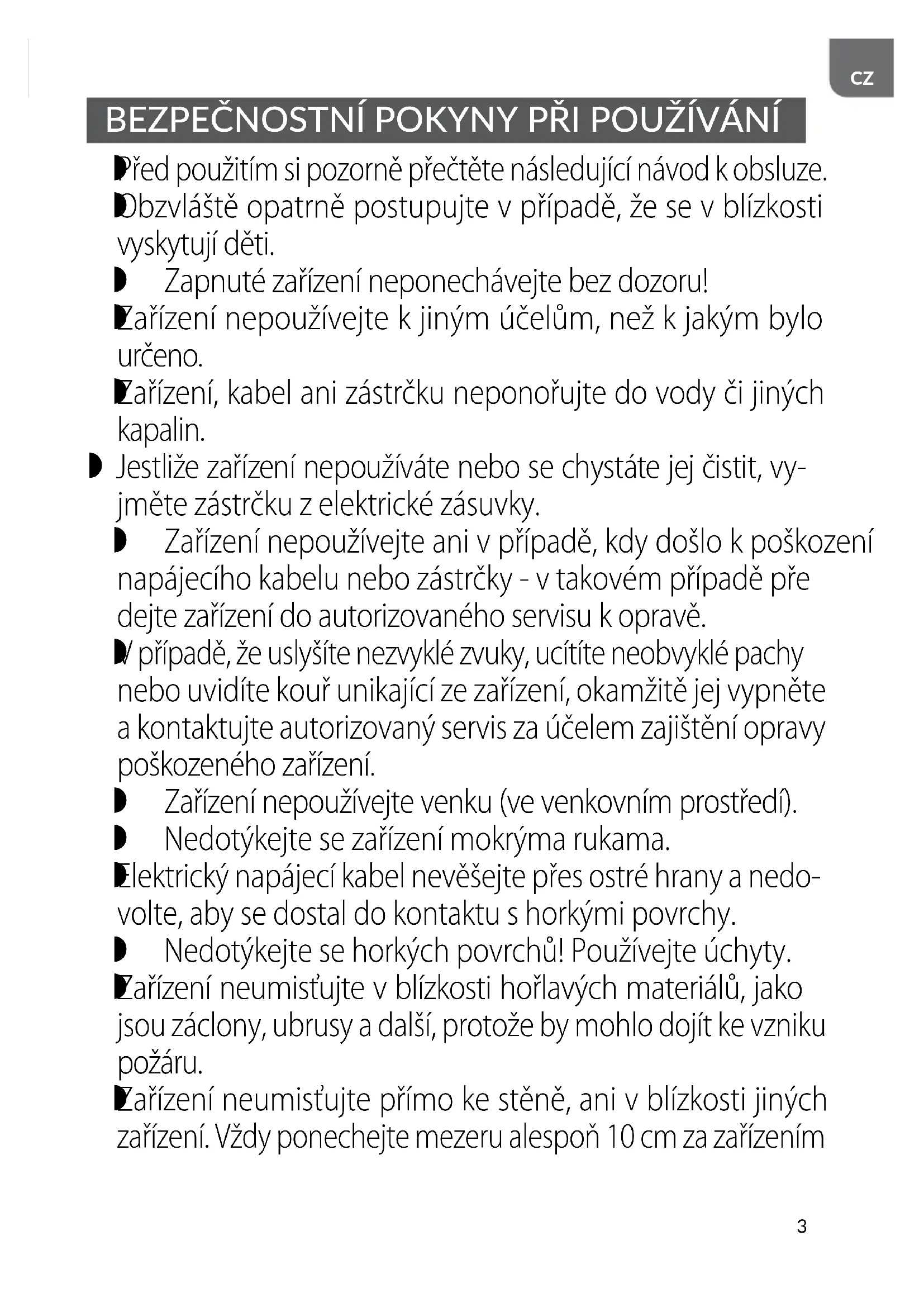 Zařízení i jeho napájecí kabel uchovávejte na místě, které je pro děti do 8 let nedostupné. S ohledem na zajištění bezpečnosti dětí, prosíme, nepone