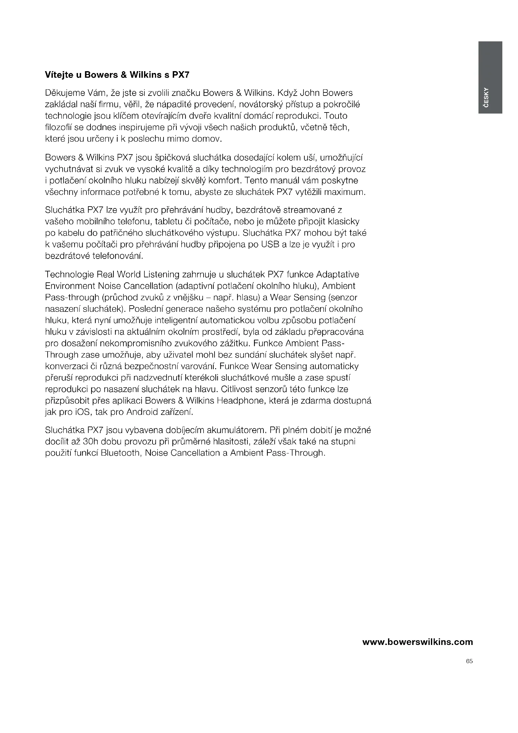 NÁVOD K OBSLUZE PX7 BOWERS & WILKINS