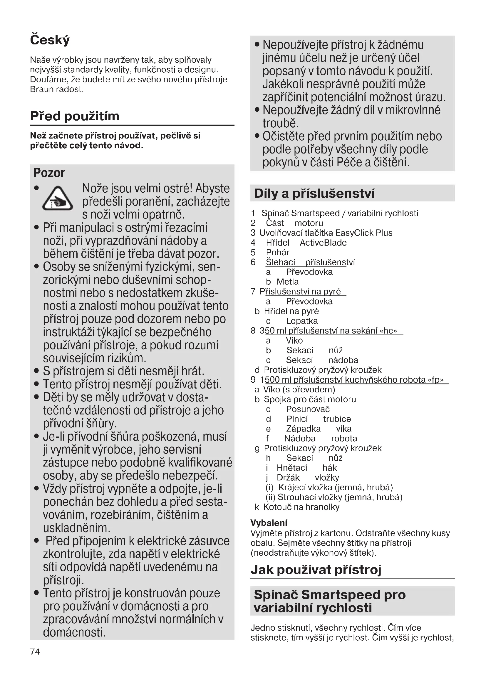 - Při zpracovávání potravin s vysokým obsahem barviva (např. mrkev) může příslušenství změnit barvu. Otřete tyto díly před čištěním rostlinným olejem. Konstrukční specifikace a uživatelský návod podléhají změnám bez předchozího upozornění. Nezahazujte výrobek na konci jeho životnosti do domovního odpadu. Likvidaci může provést servisní středisko Braun nebo příslušné sběrny ve vaší zemi. Materiály a součásti, které jsou určeny pro styk s potravinami, splňují ustanovení evropského nařízení 1935/2004. 5722113494_02_MQ7075x-7077x-7087x INT_S6-144.indd 785722113494_02_MQ7075x-7077x-7087x INT_S6-144.indd 78 12.07.19 08:1012.07.19 08:1079 Slovensk Naše produkty sa vyrábajú tak, aby spĺňali tie najprísnejšie štandardy kvality, funkčnosti a dizajnu. Pevne veríme, že obsluha spotrebiča Braun bude pre vás príjemným zážitkom. Pred použitím prístroja Než začnete prístroj používať, pozorne si prečítajte celý tento návod. Upozornenie