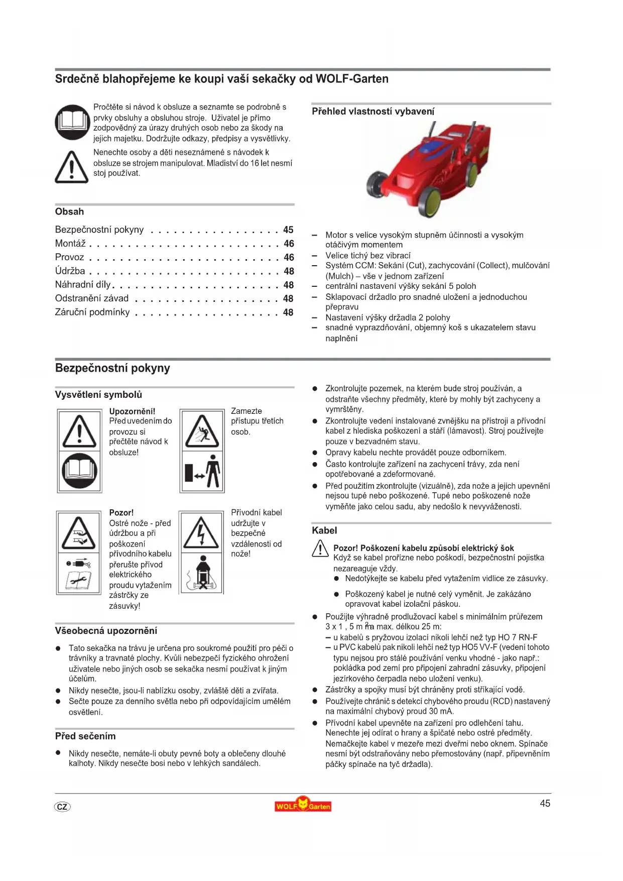 SrdeZn[ blahop\ejeme ke koupi vaší sekaZky od WOLF-Garten Obsah Bezpenostní pokyny