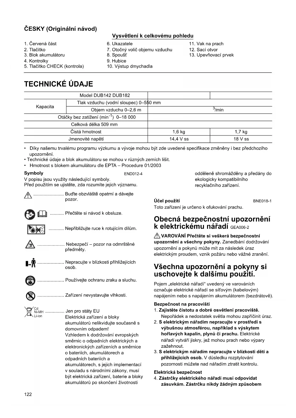 DUB182Z - Foukač listí MAKITA - Bezplatný návod k obsluze