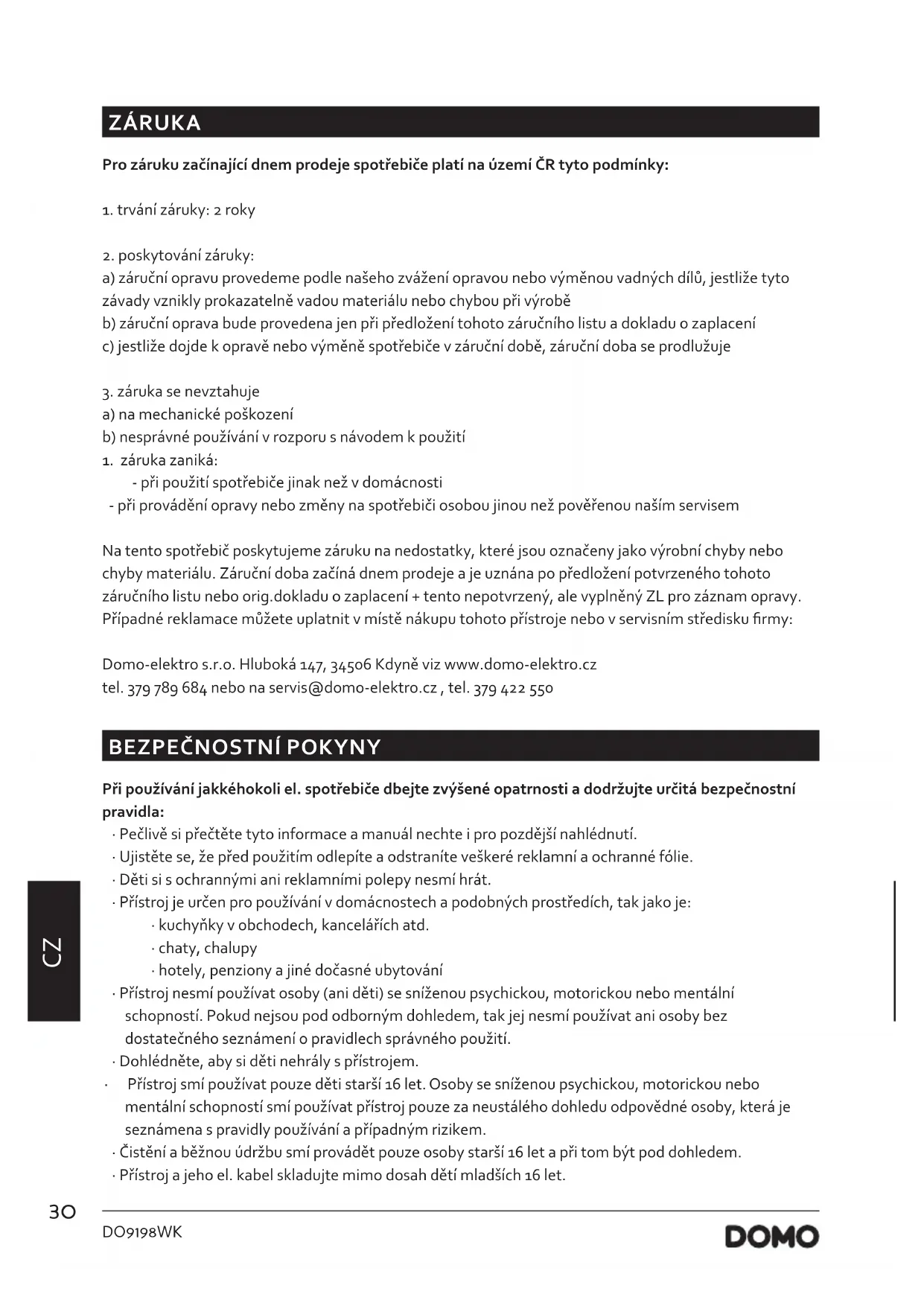 NÁVOD K OBSLUZE DO9198WK DOMO