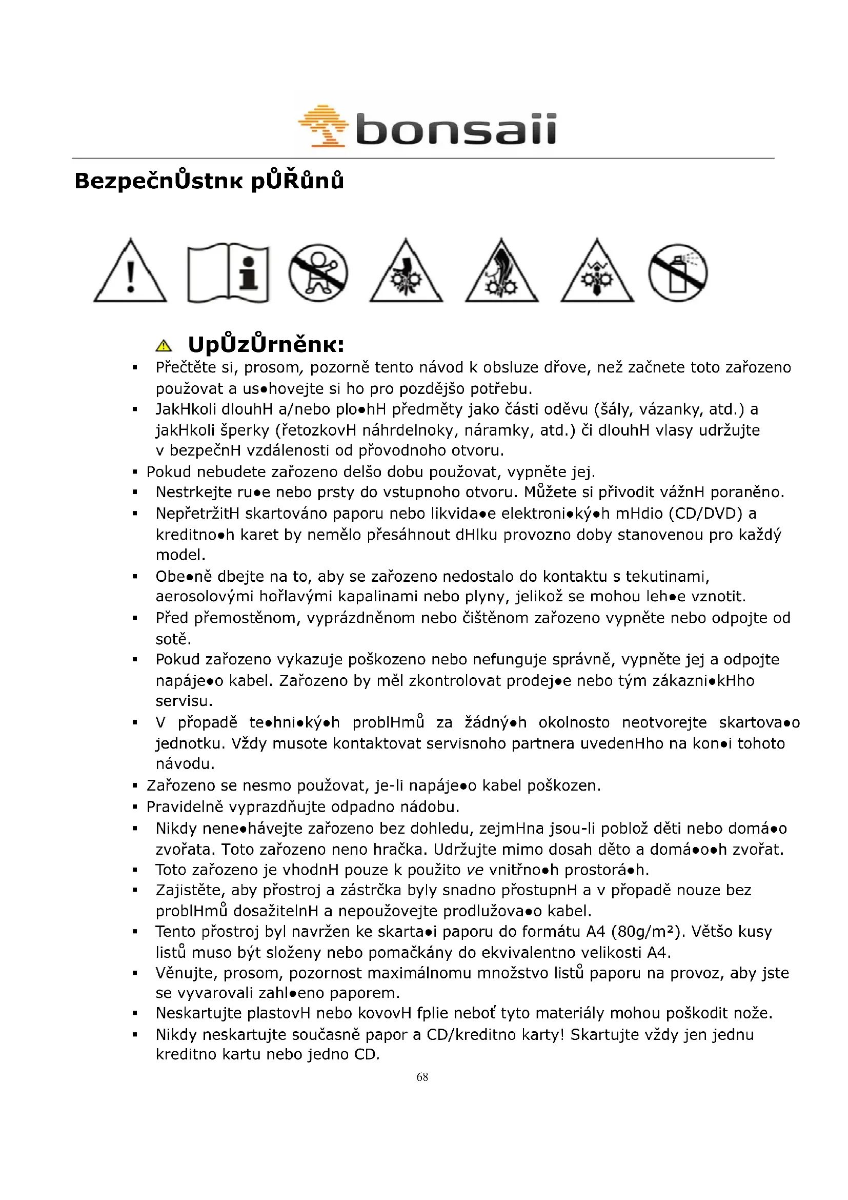 4S30 - Skartovač Bonsaii - Bezplatný návod k obsluze
