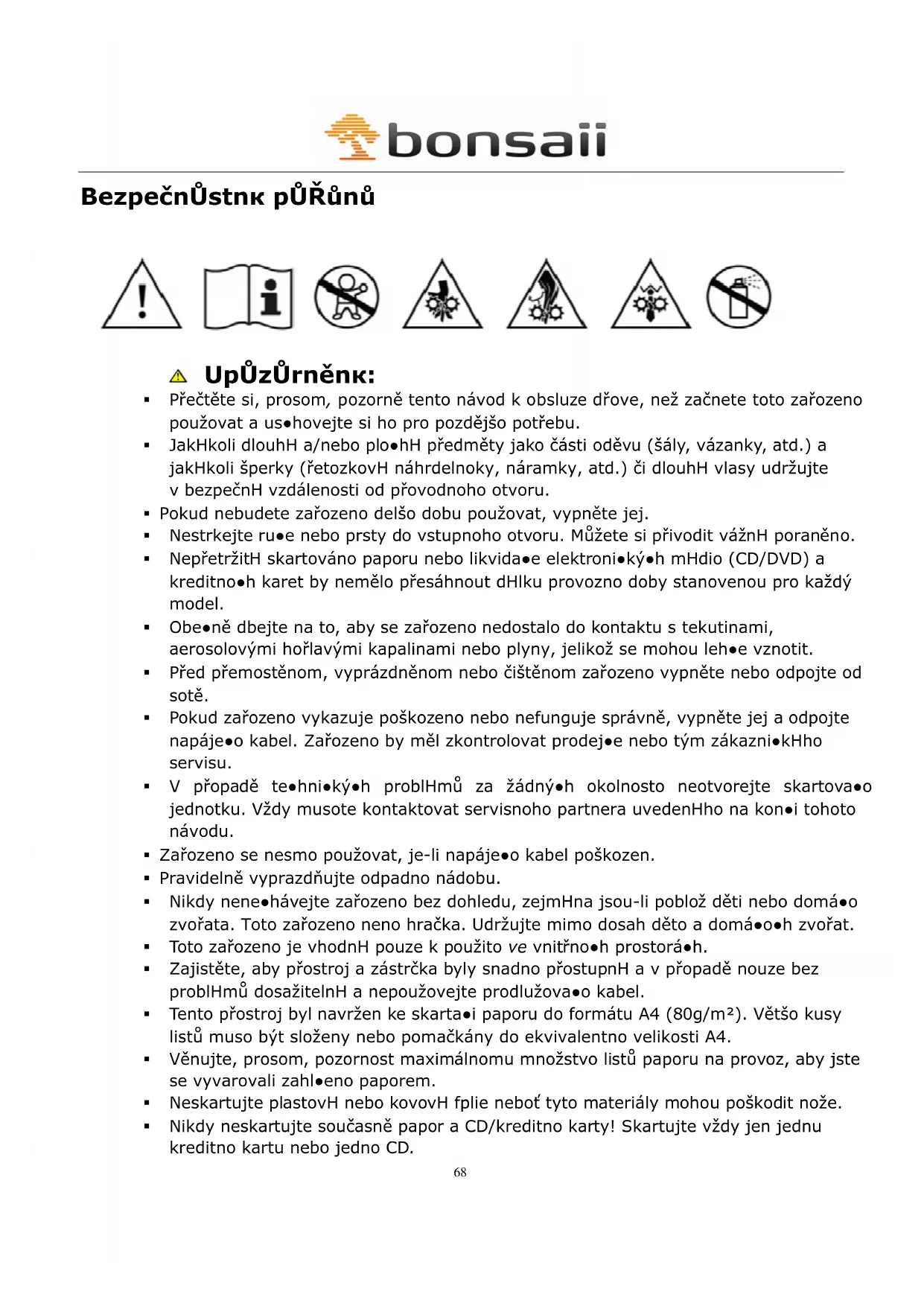 3S30 - Skartovač Bonsaii - Bezplatný návod k obsluze