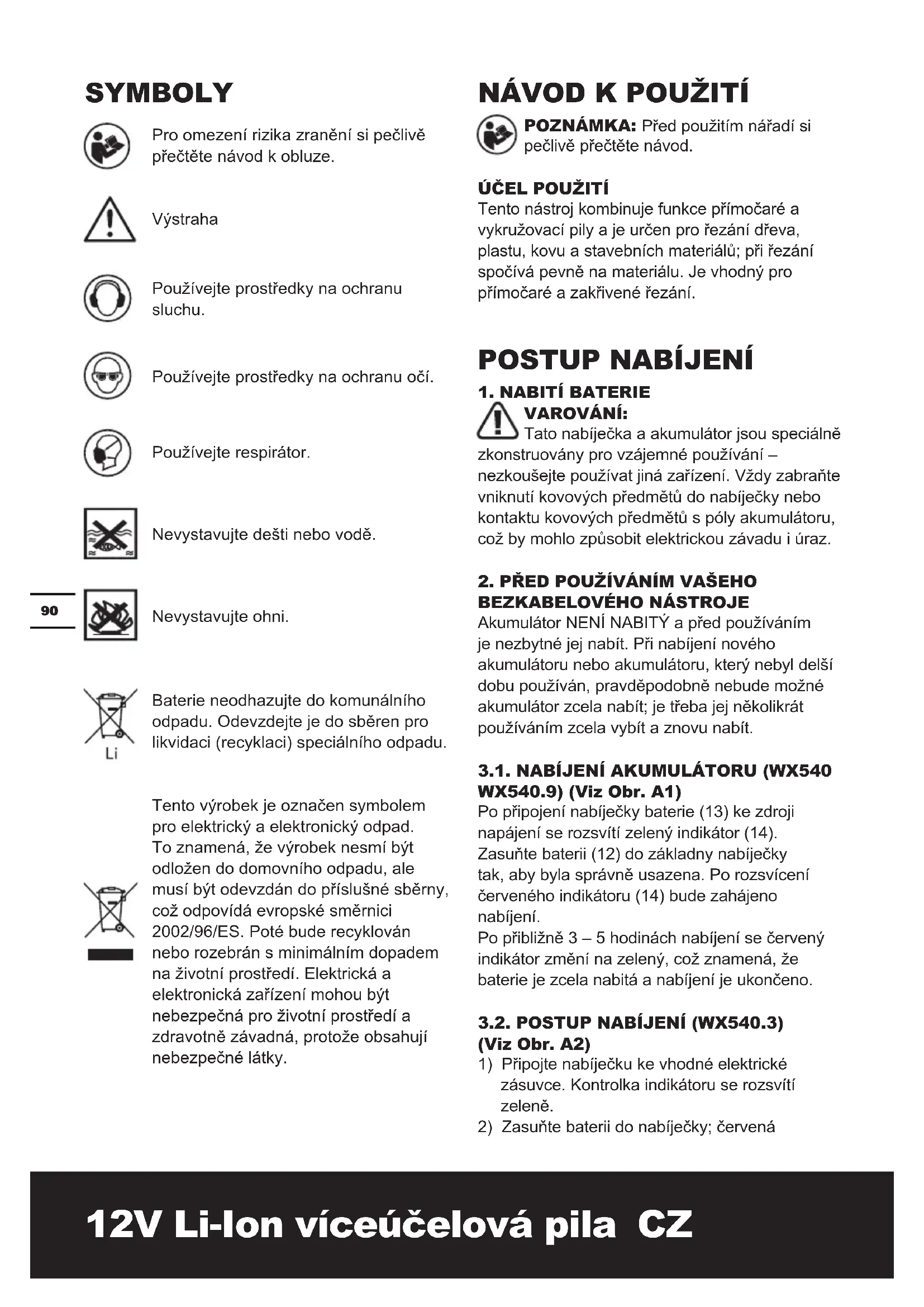 Stáhněte si návod pro váš Pila ve formátu PDF zdarma! Najděte svůj návod WX540.9 - WORX a vezměte svůj elektronický přístroj zpět do rukou. Na této stránce jsou zveřejněny všechny dokumenty potřebné k používání vašeho zařízení. WX540.9 značky WORX.