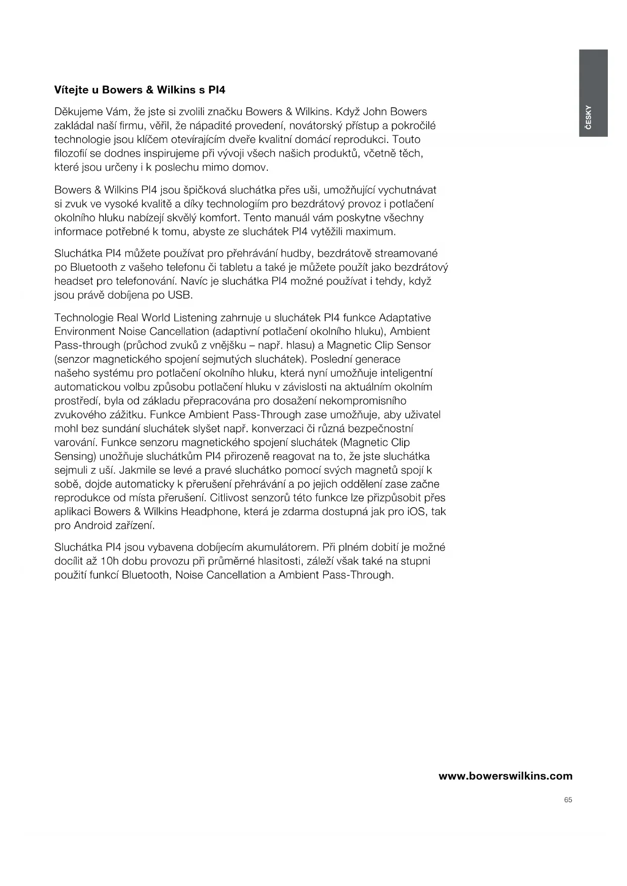 NÁVOD K OBSLUZE PI4 BOWERS & WILKINS