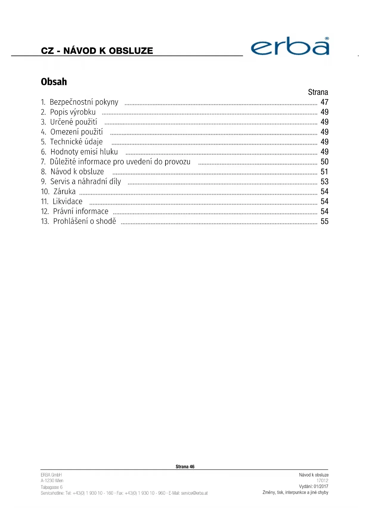 Najděte návod k zařízení zdarma 17012 Erba ve formátu PDF.