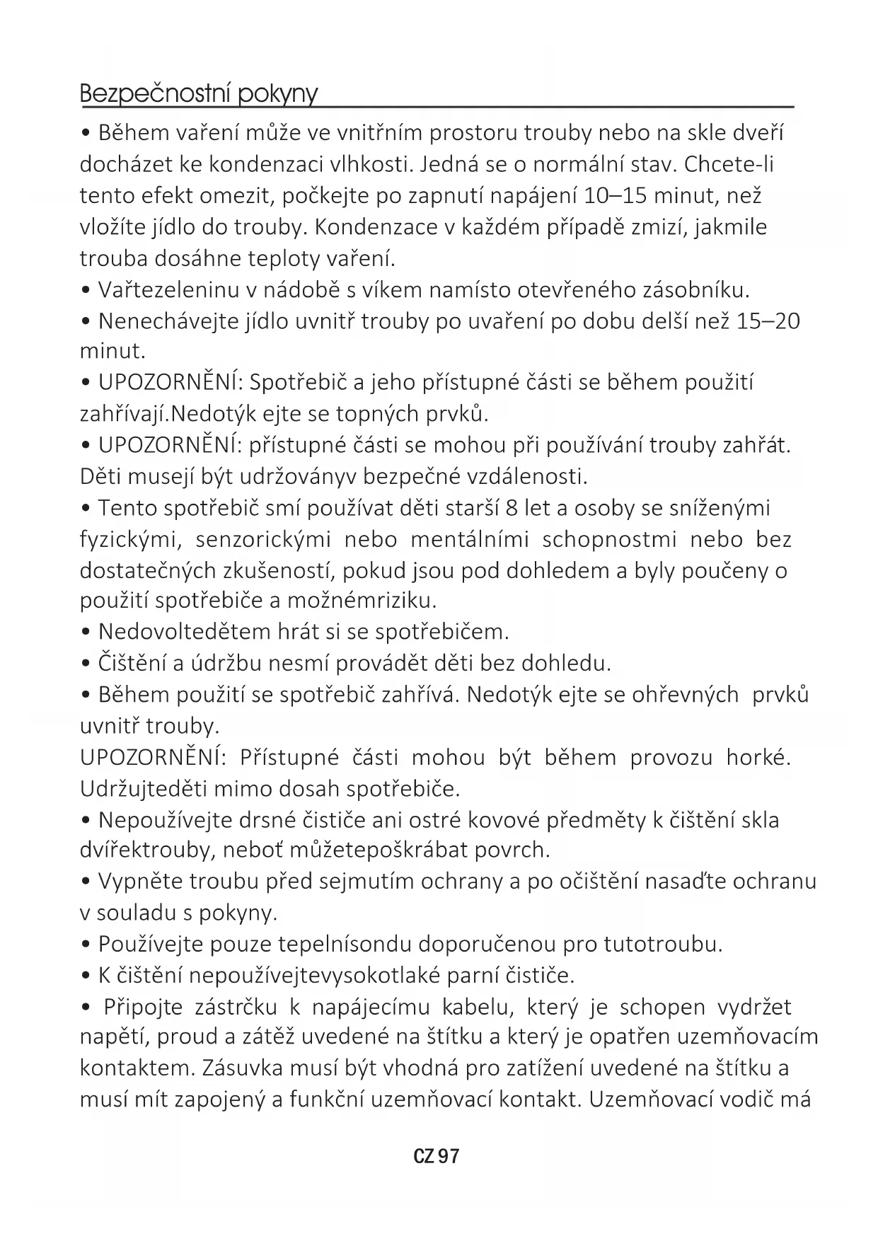 - UPOZORNÉNI: pristupné casti se mohou pri použivani trouby zahrát. Děti museji byt udržoványv bezpečné vzdálenosti.