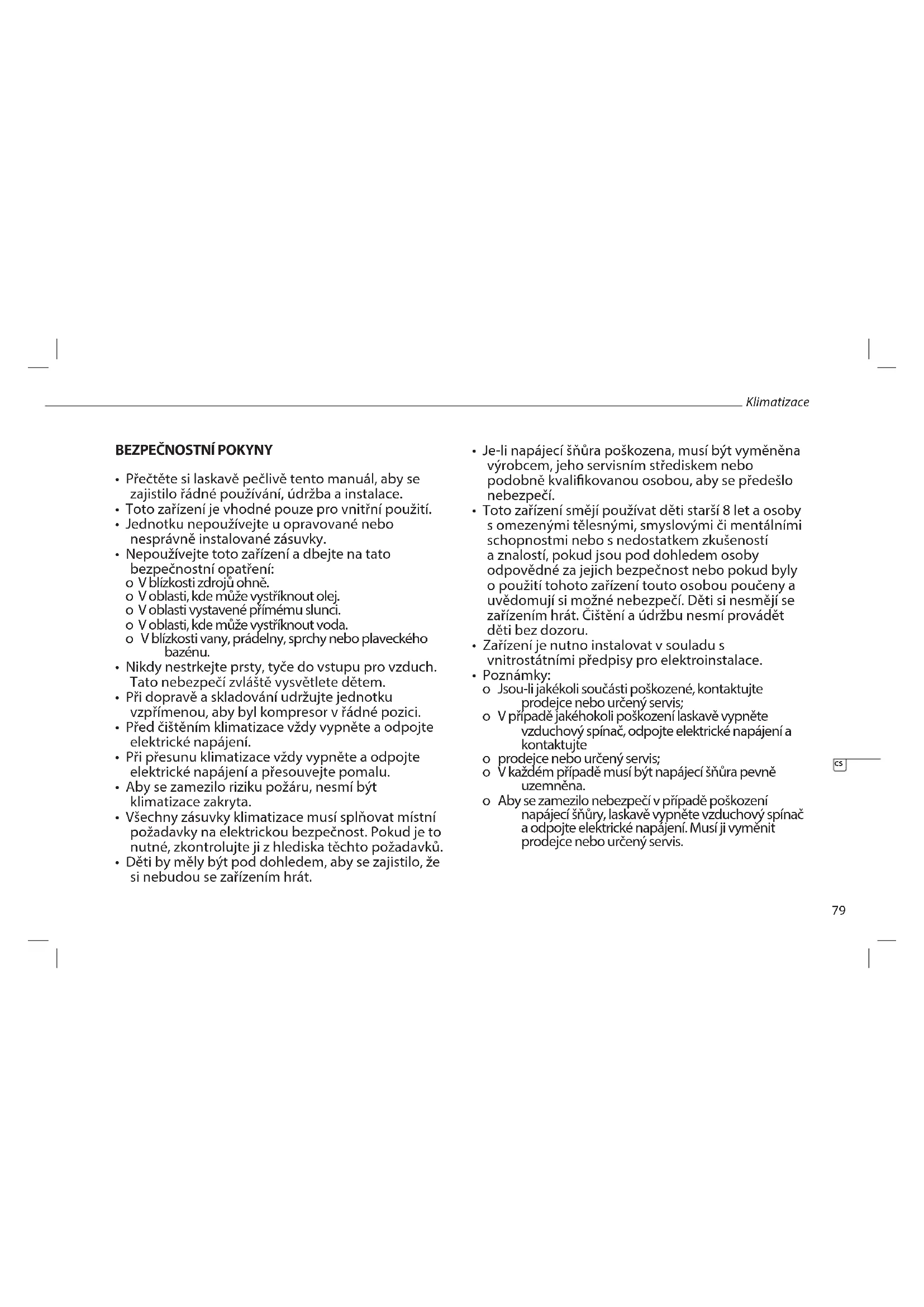 - Aby se zamezilo riziku požáru, nesmí být klimatizace zakryta.
