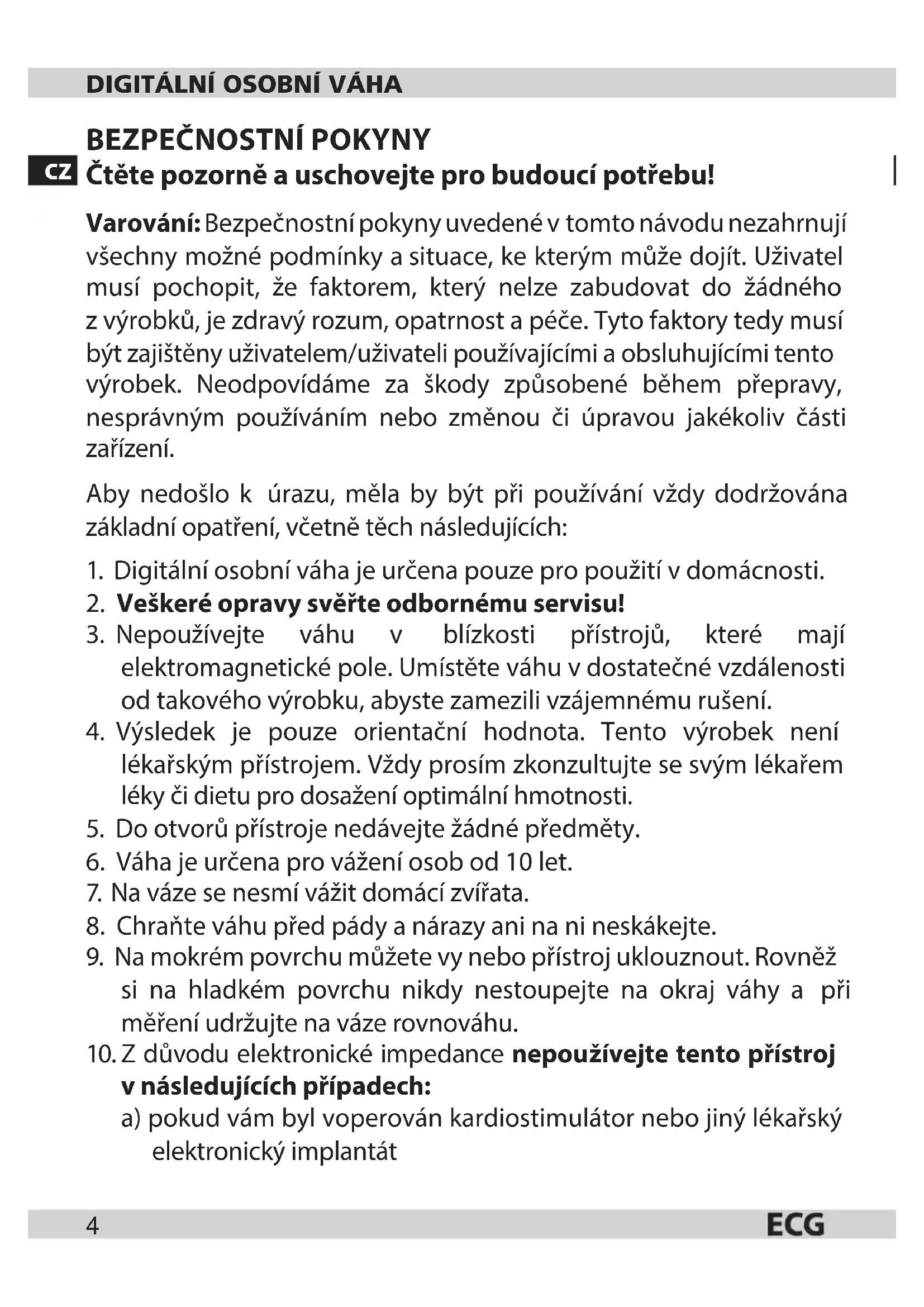 OV 126 - Váhy ECG - Bezplatný návod k obsluze