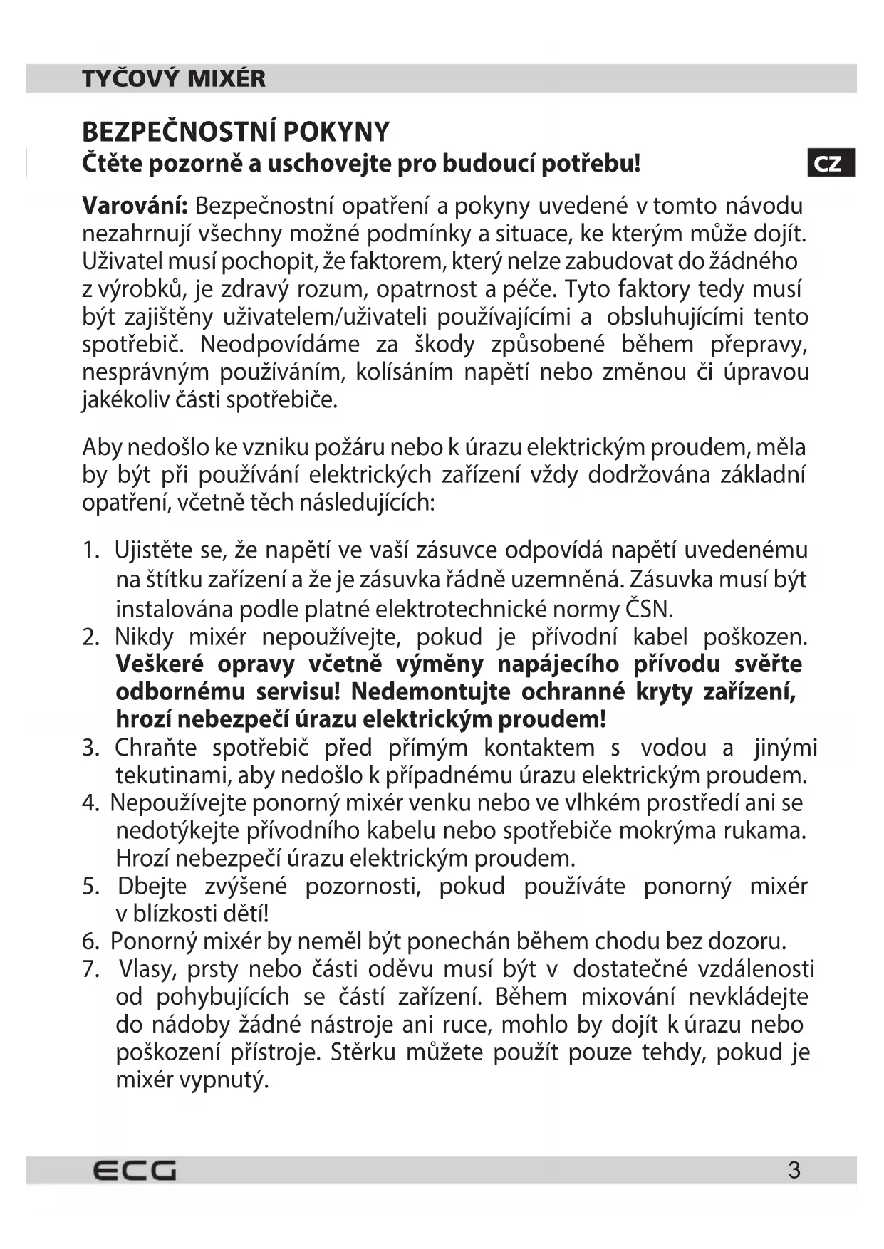 RM 200 - Tyčový mixér ECG - Bezplatný návod k obsluze