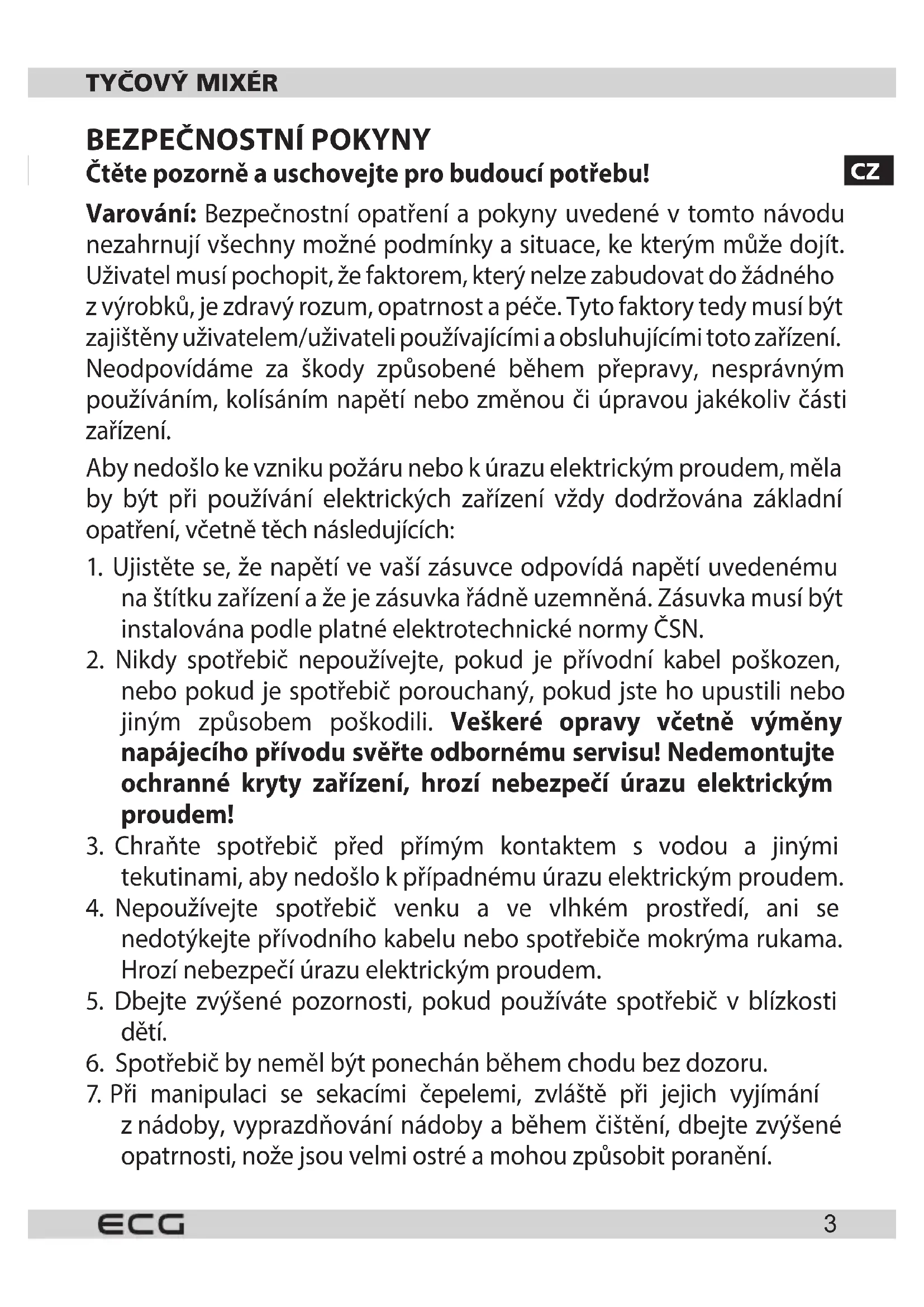 RM 430 - Tyčový mixér ECG - Bezplatný návod k obsluze