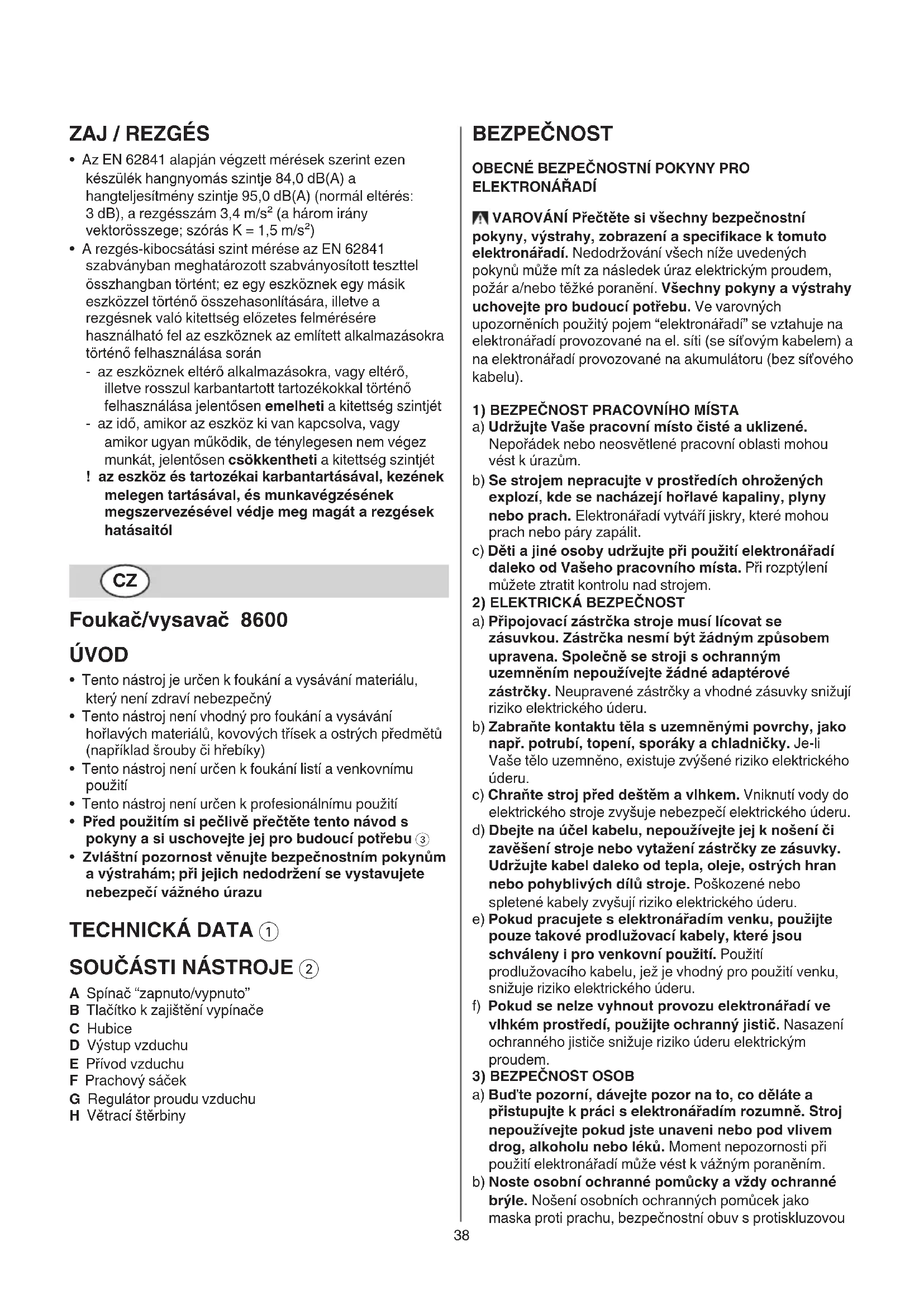 - Tento nástroj je určen k foukání a vysávání materiálu, který není zdraví nebezpečný