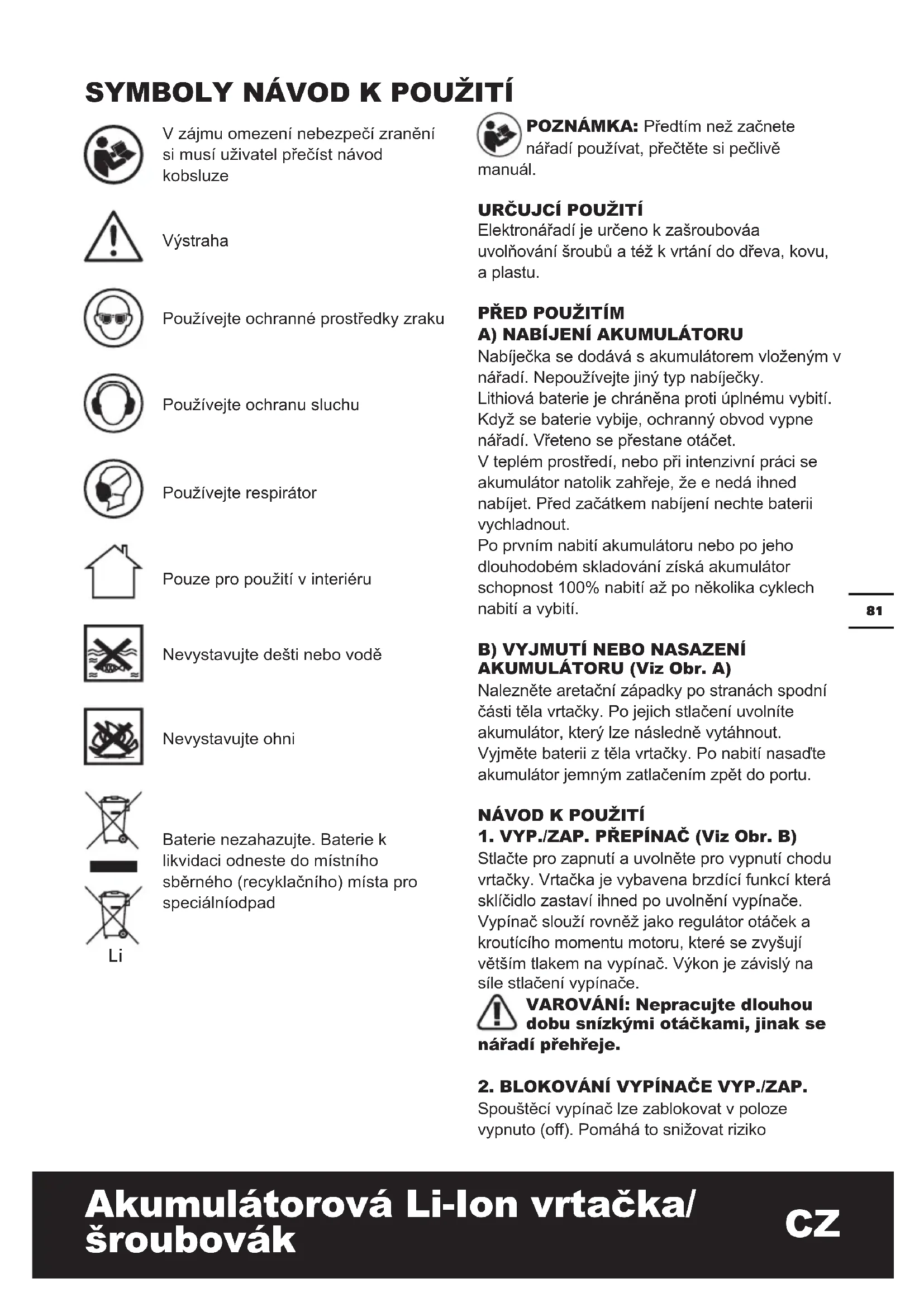 SyMBOLy Předtím než začnete nářadí používat, přečtěte si pečlivě manuál.