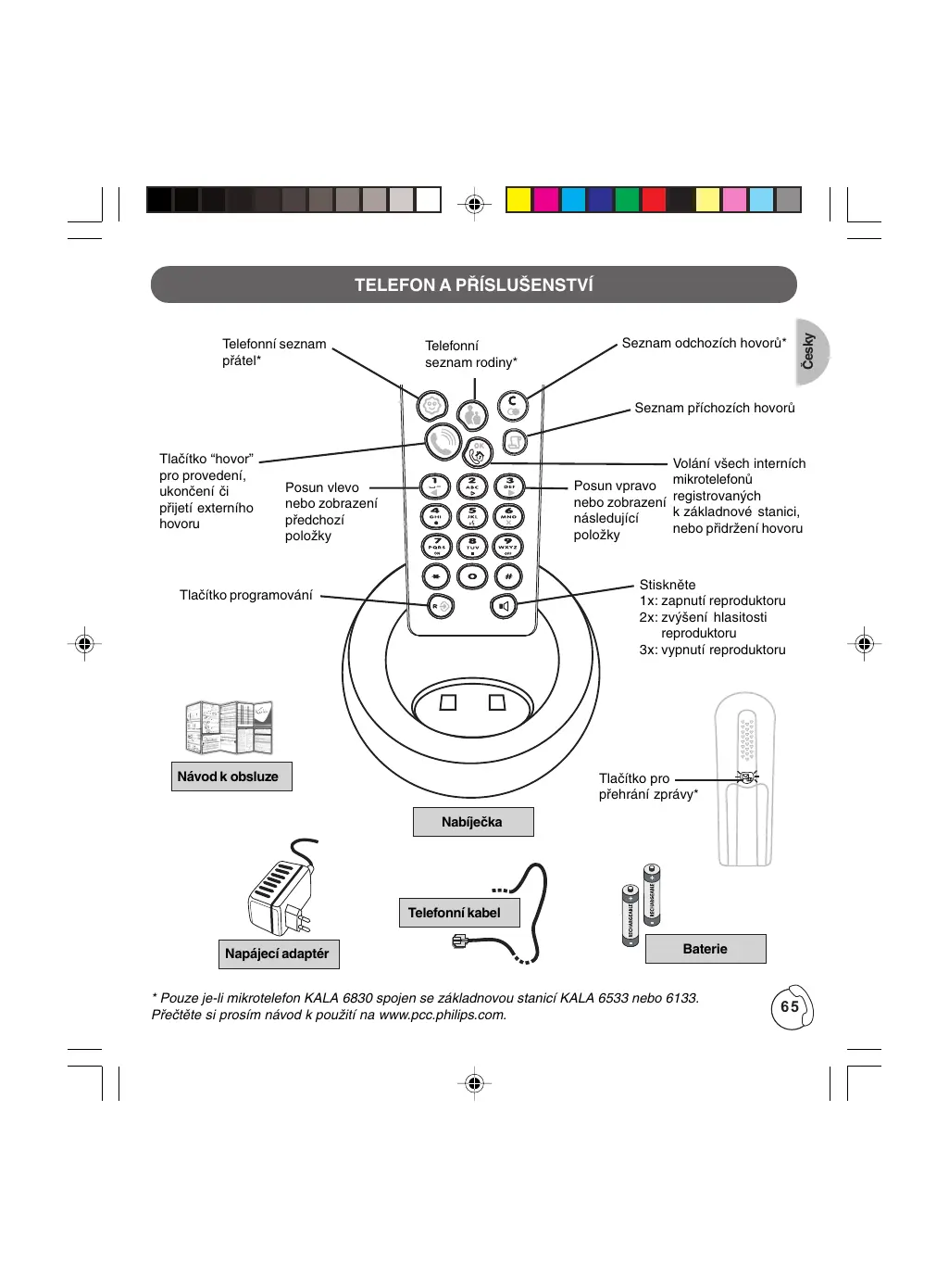 - Pouze je-li mikrotelefon KALA 6830 spojen se základnovou stanicí KALA 6533 nebo 6133. Přečtěte si prosím návod k použití na www.pcc.philips.com.