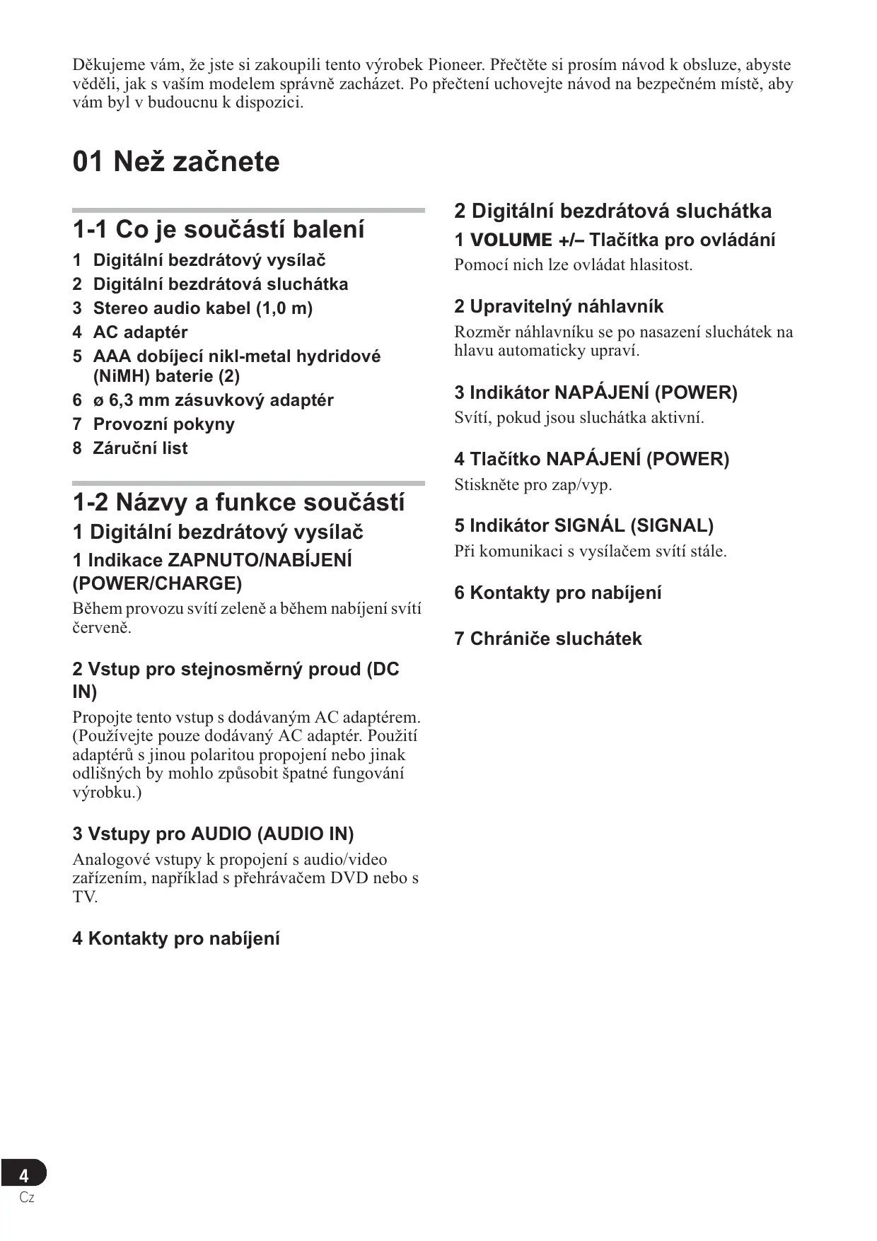 DČkujeme vám, že jste si zakoupili tento výrobek Pioneer. PĜeþtČte si prosím návod k obsluze, abyste vČdČli, jak s vaším modelem správnČ zacházet. Po pĜeþtení uchovejte návod na bezpeþném místČ, aby vám byl v budoucnu k dispozici.