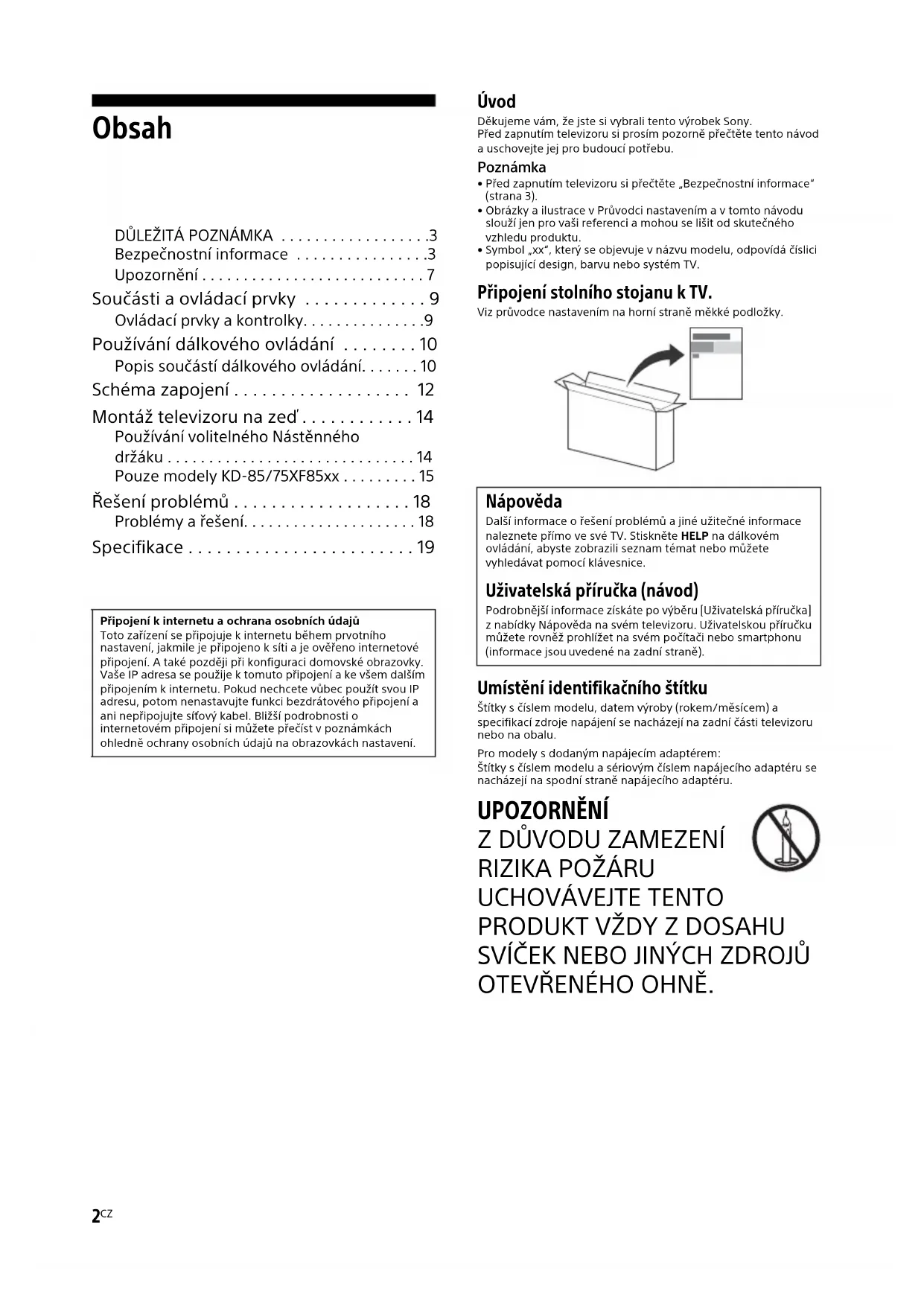 Televizor instalujte a pouzivejte podle nasledujicichPokynu, zabranine tak nebezpeci pozaru, urazu elektrickym proudem nebo poskozeni anebo zraneni.