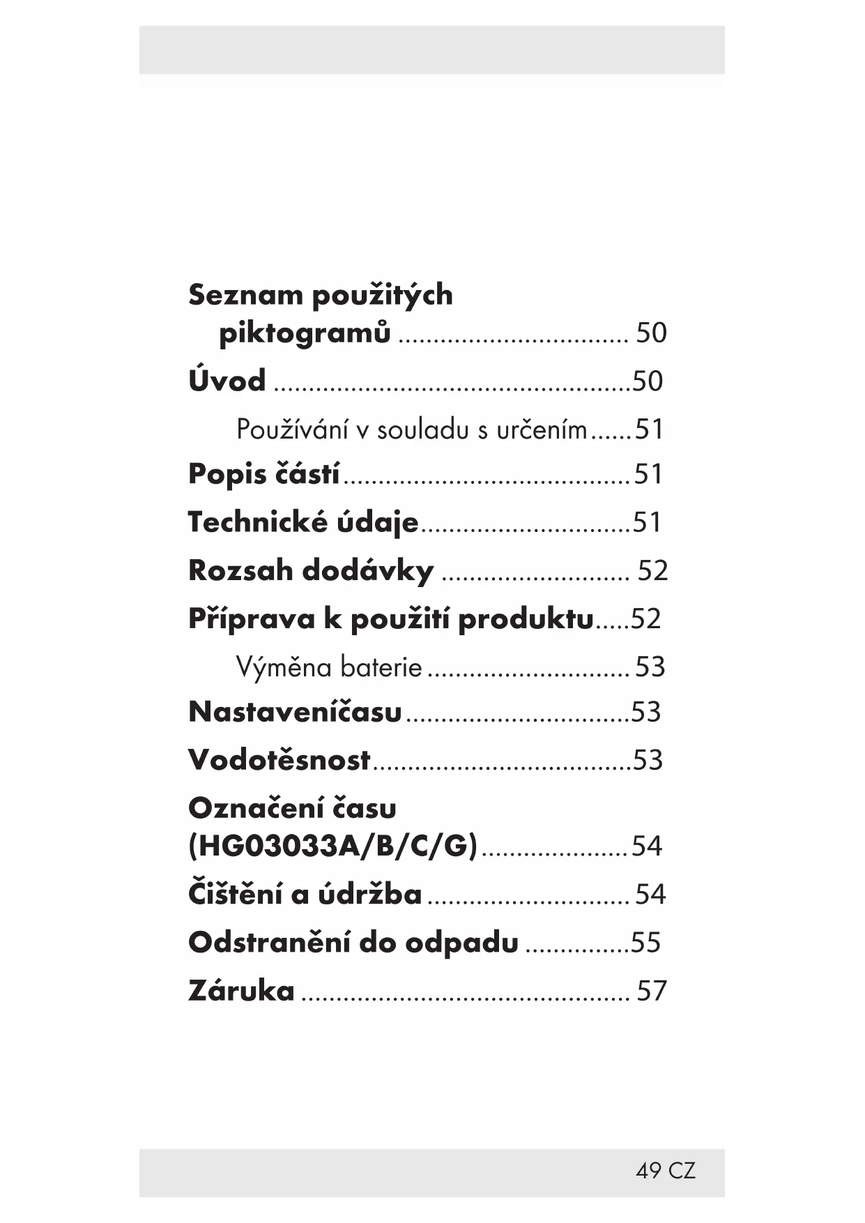 Oznaceni casu (HG03033A/B/C/G)