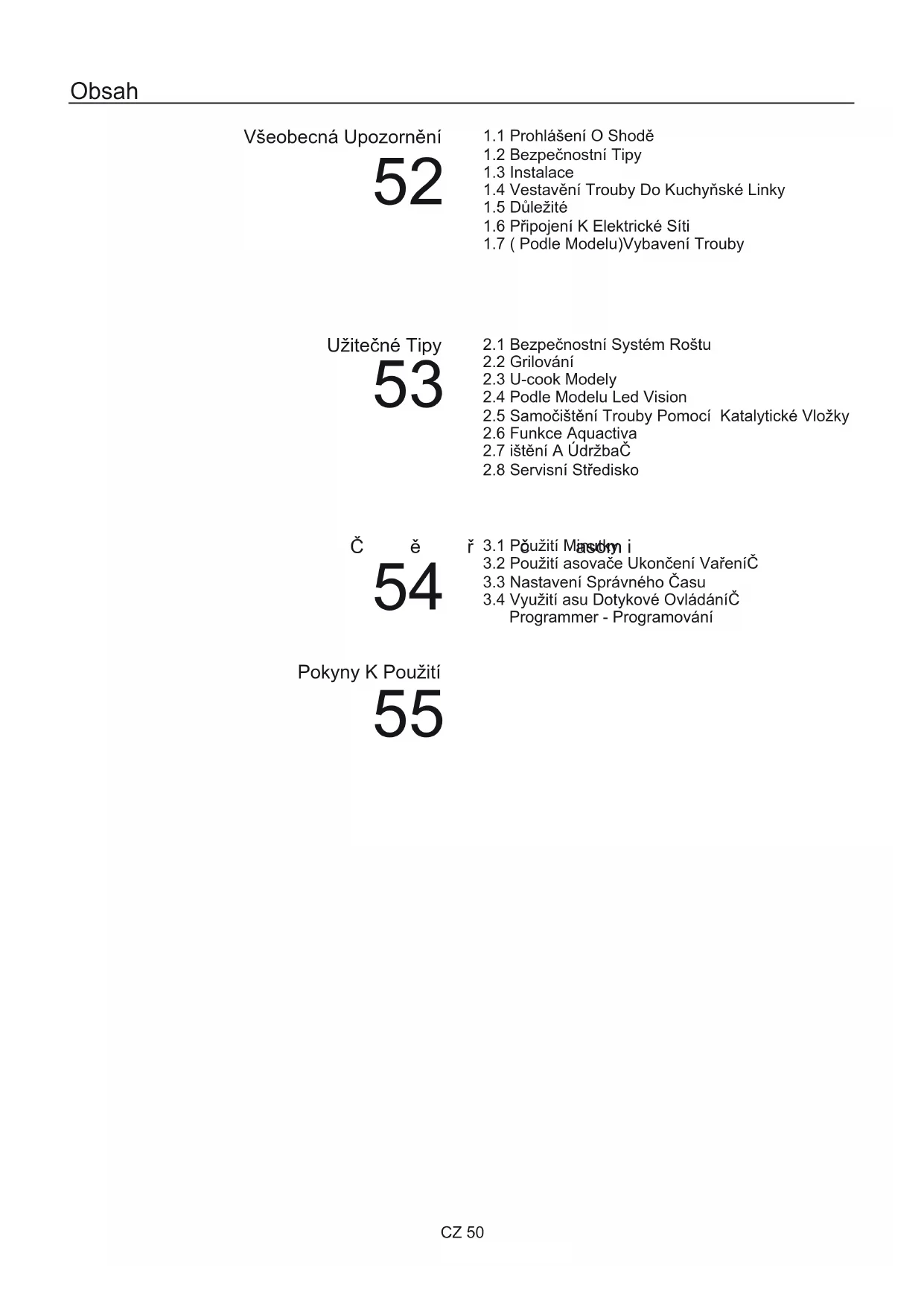 Tam, kde je to možné, vyhněte se předehřátí trouby a vždy se ji snažte naplnit. Neotevírejte dvířka trouby, pokud to není nezbytné, protože dochází k úniku tepla, které se rozptyluje pokaždé, když je trouba otevřena. Pro významnou úsporu energie vypněte troubu 5 až 10 minut před plánovaným koncem doby pečení a využíjte zbytkové teplo, které trouba generuje. Těsnění udržujte v čistotě a v pořádku, aby nedošlo k úniku tepla ven z trouby. Máte-li smlouvuna odběr elektrické energie za nižší tarif v určitých hodinách v průběhu dne, využijte program pro "odložené pečení". CZ 51