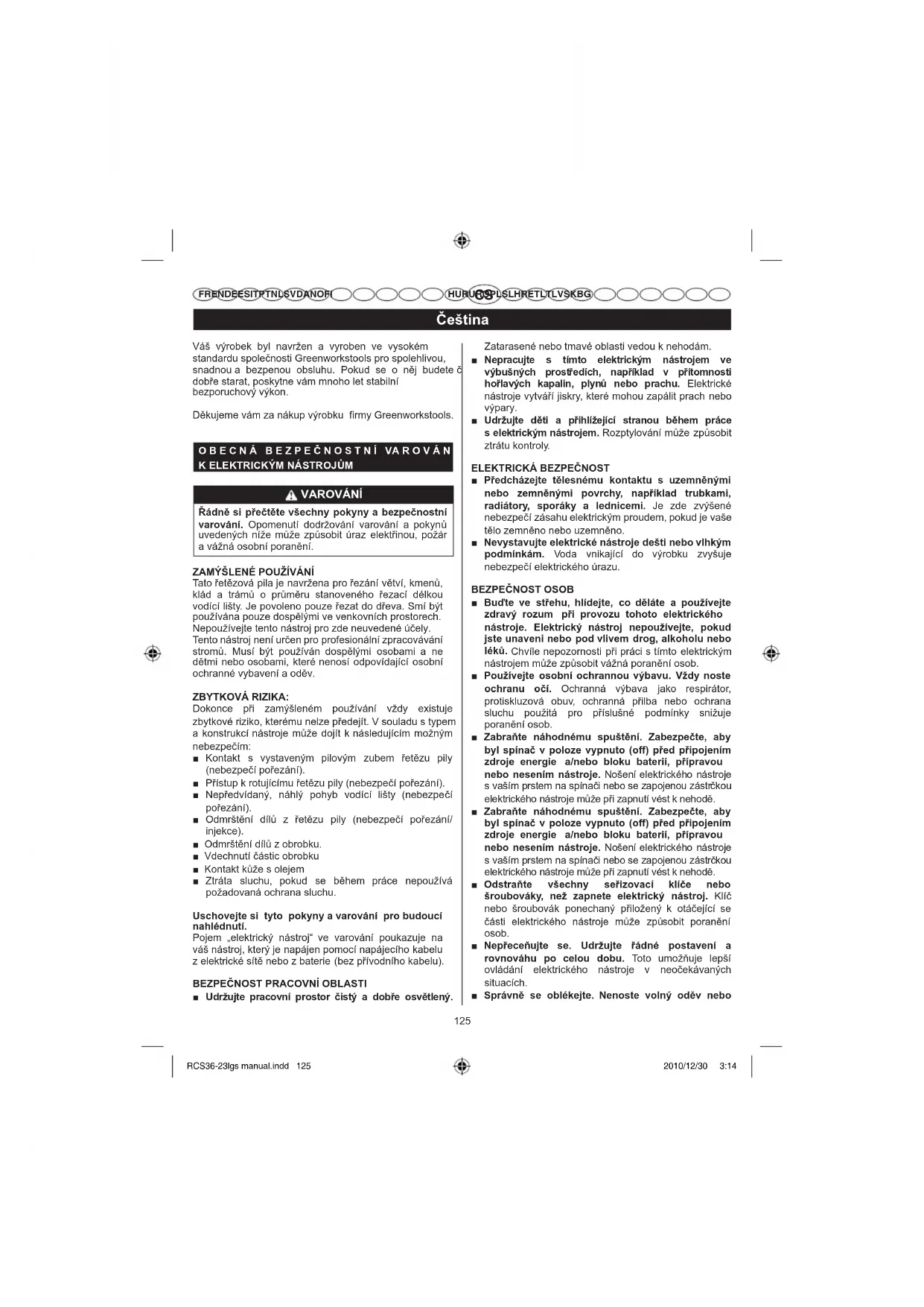 NÁVOD K OBSLUZE G40CS30 GREENWORKS