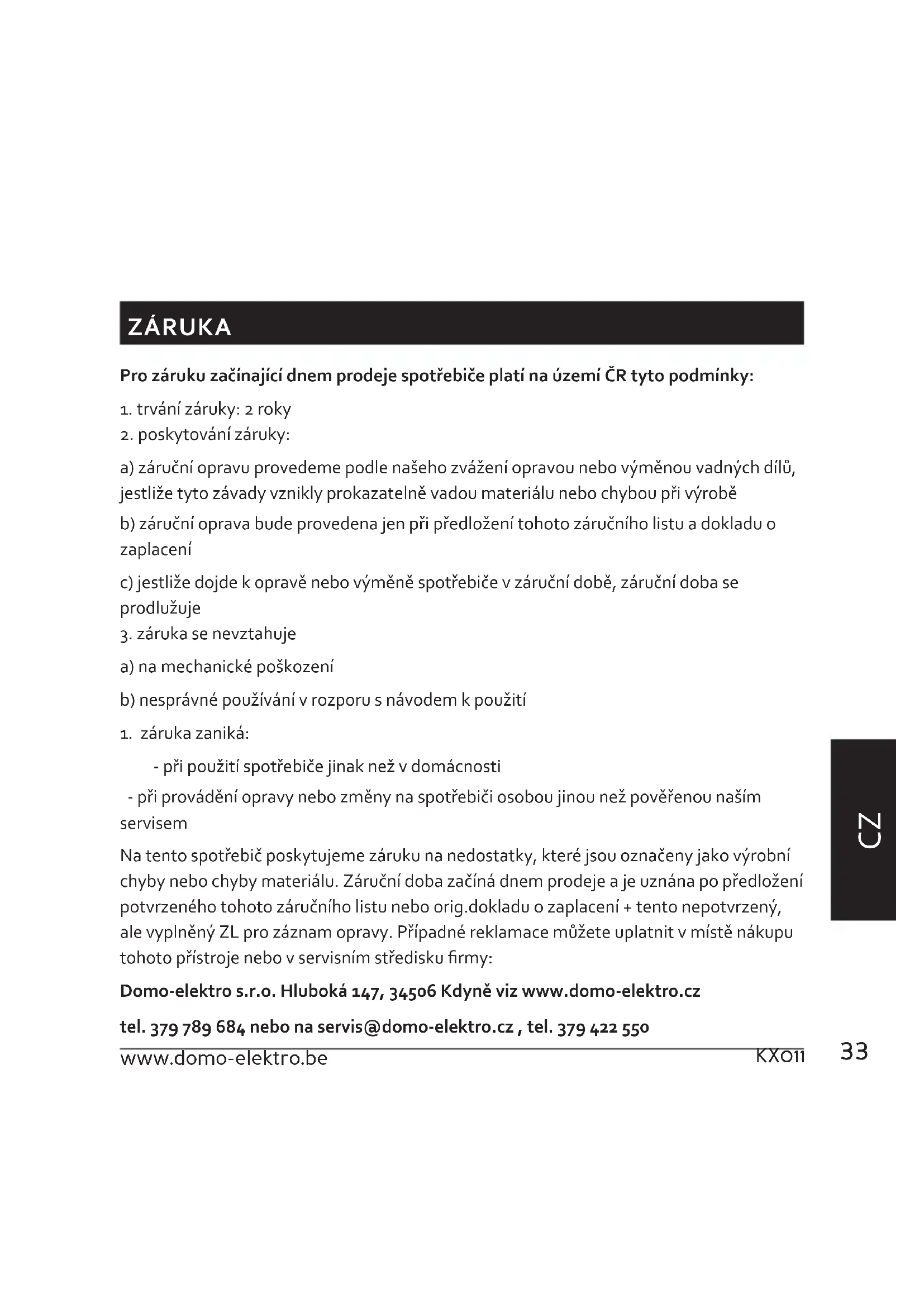 NÁVOD K OBSLUZE KX011 DOMO