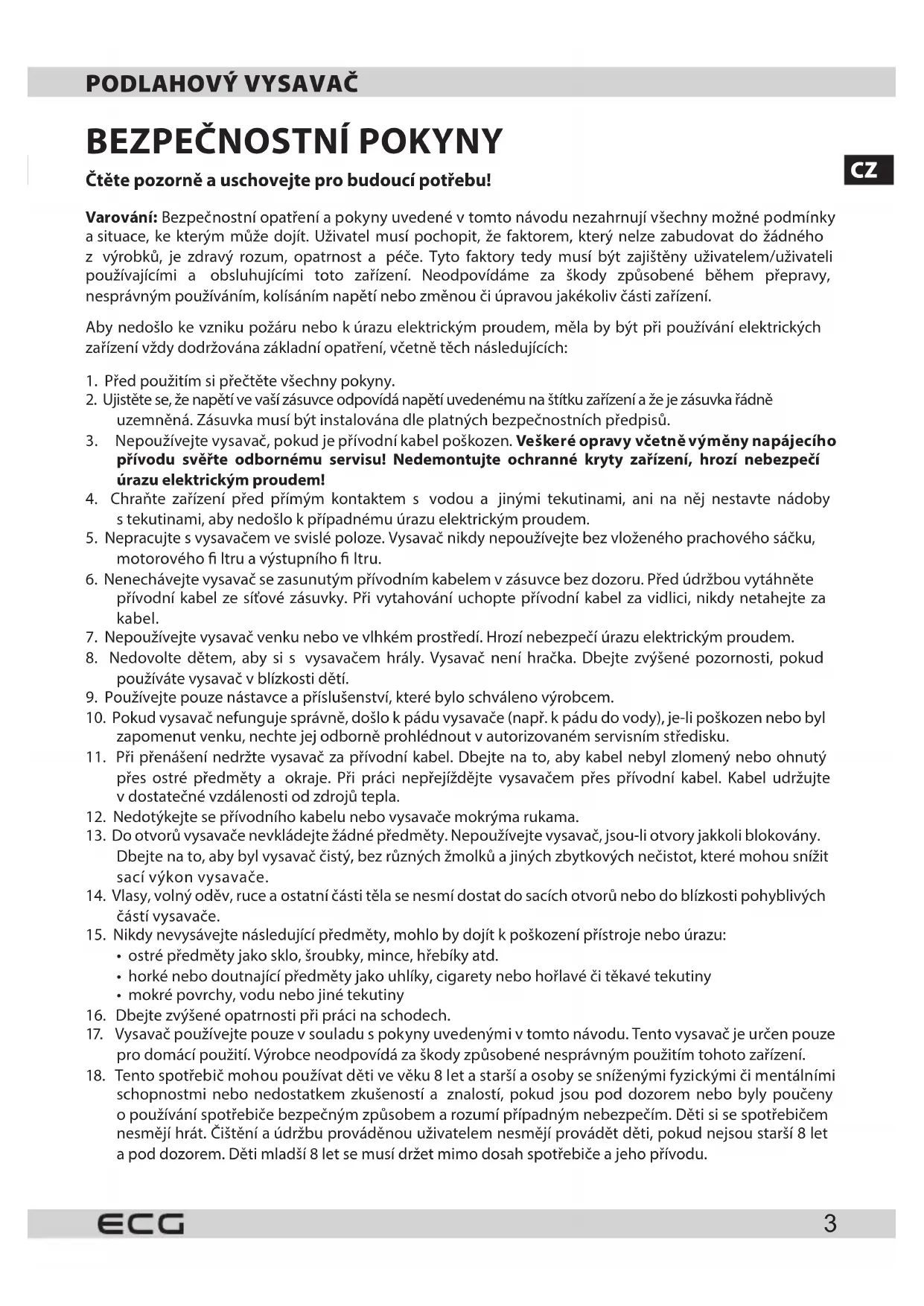 VP 3120 S - Vysavač ECG - Bezplatný návod k obsluze