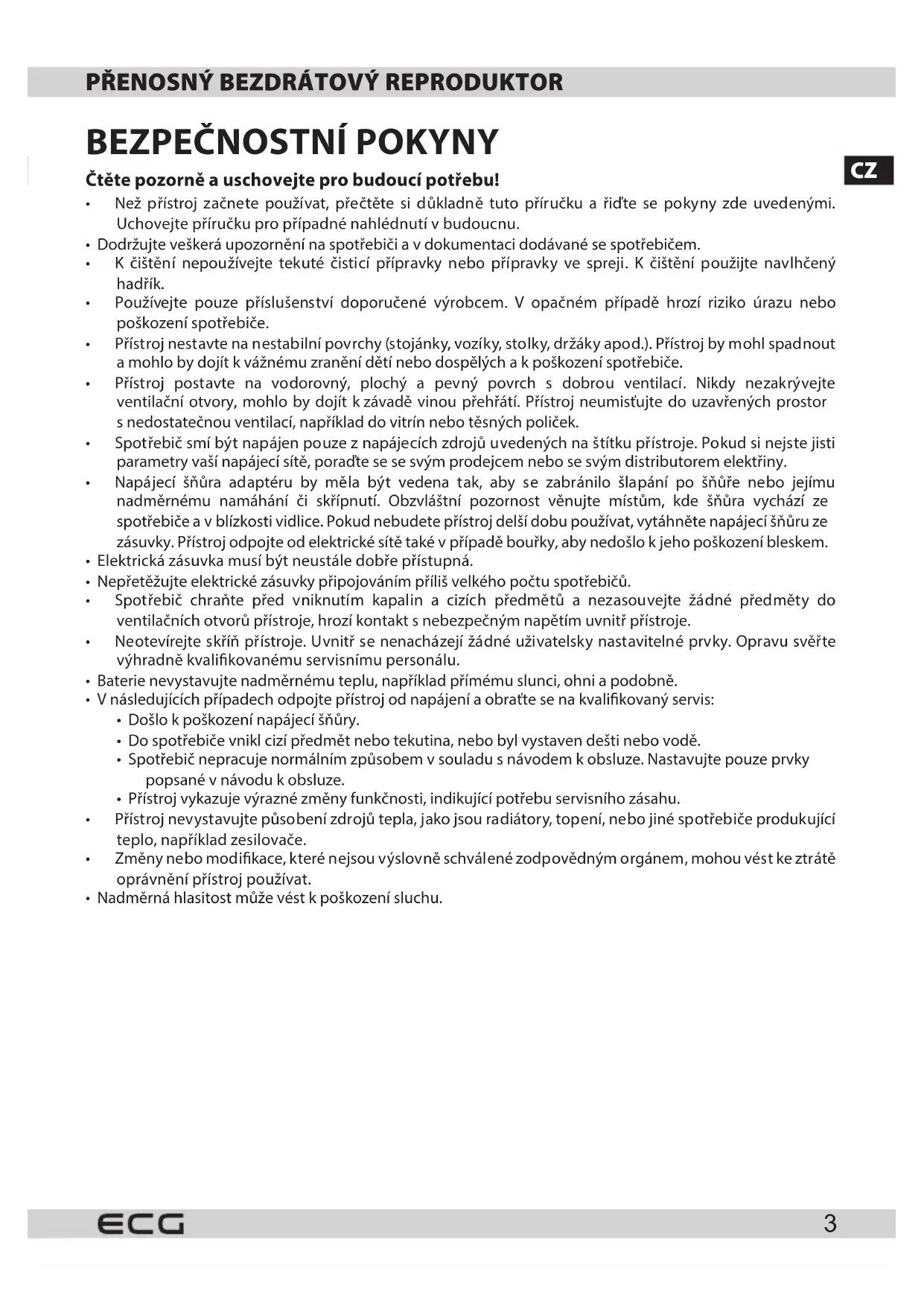Návod k obsluze je k dispozici na webových stránkách www.ecg-electro.eu. Změna textu a technických parametrů vyhrazena.