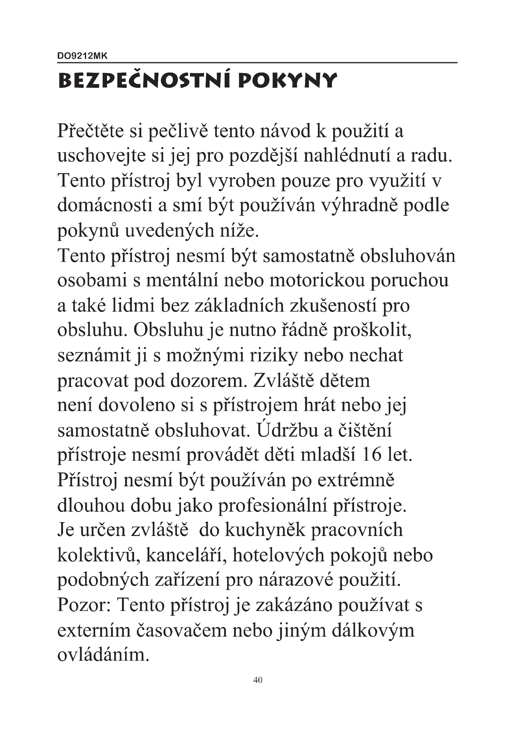 NÁVOD K OBSLUZE DO9212MK DOMO