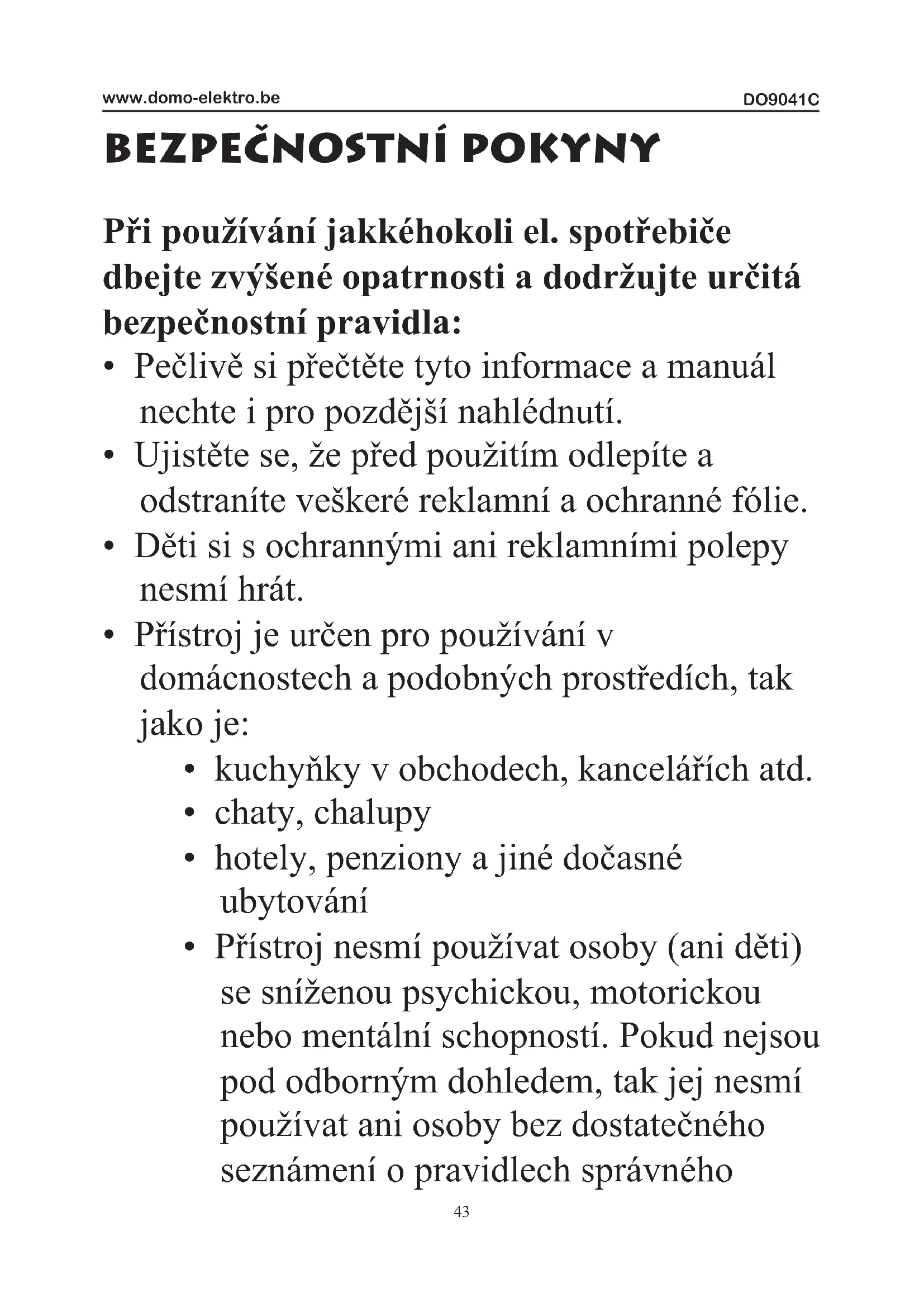 NÁVOD K OBSLUZE DO9041C DOMO