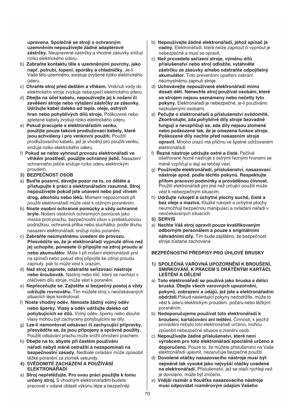 a) Nechte Váš stroj opravit pouze kvalikovaným odborným personálem a pouze s originálními náhradními díly. Tím bude zajištěno, že bezpečnost stroje zůstane zachována. BEZPEČNOSTNÍ PŘEDPISY PRO ÚHLOVÉ BRUSKY
