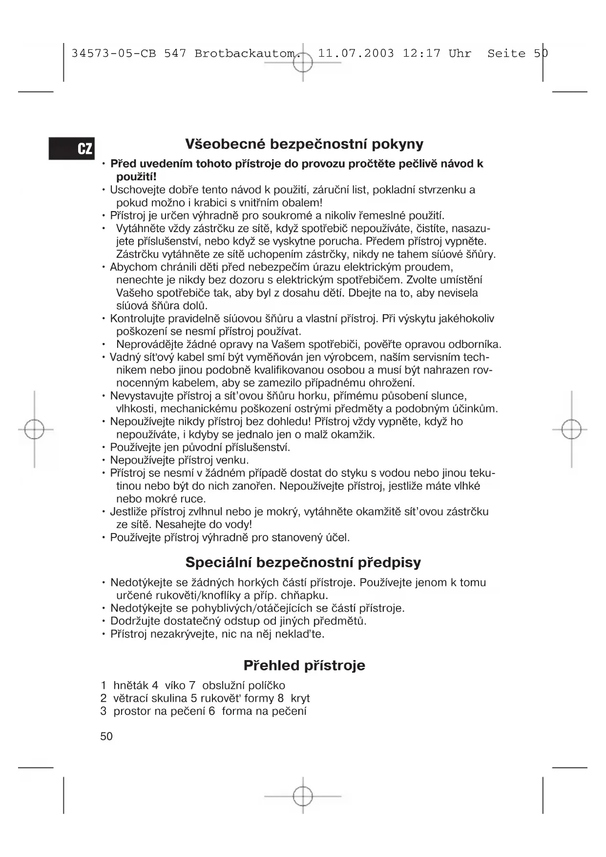 34573-05-CB 547 Brotbackautom. 11.07.2003 12:17 Uhr Seite 49Všeobecné bezpečnostní pokyny