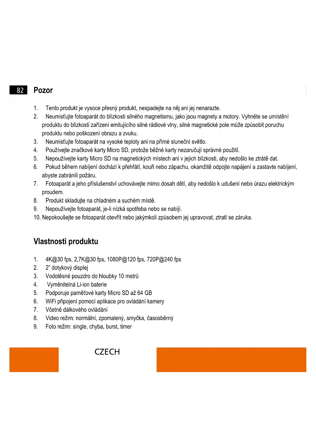 10.Nepokoušejtesefotoaparátotevřítnebojakýmkolizpůsobemjejupravovat,ztratísezáruka. Vlastnosti produktu