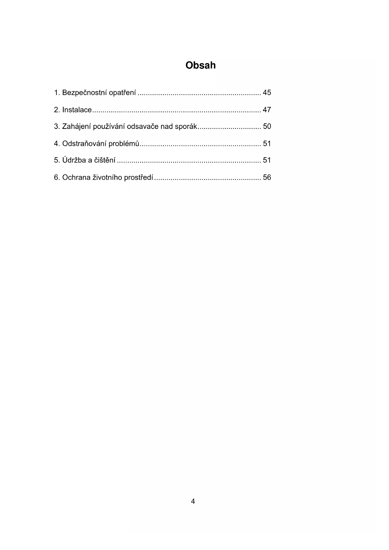 3. Zahájení používání odsavače nad sporák ............................... 50