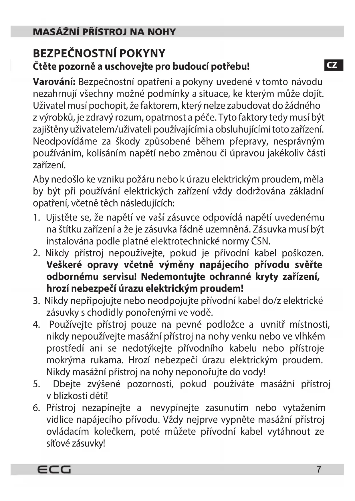 MN 105 - Koupel nohou ECG - Bezplatný návod k obsluze