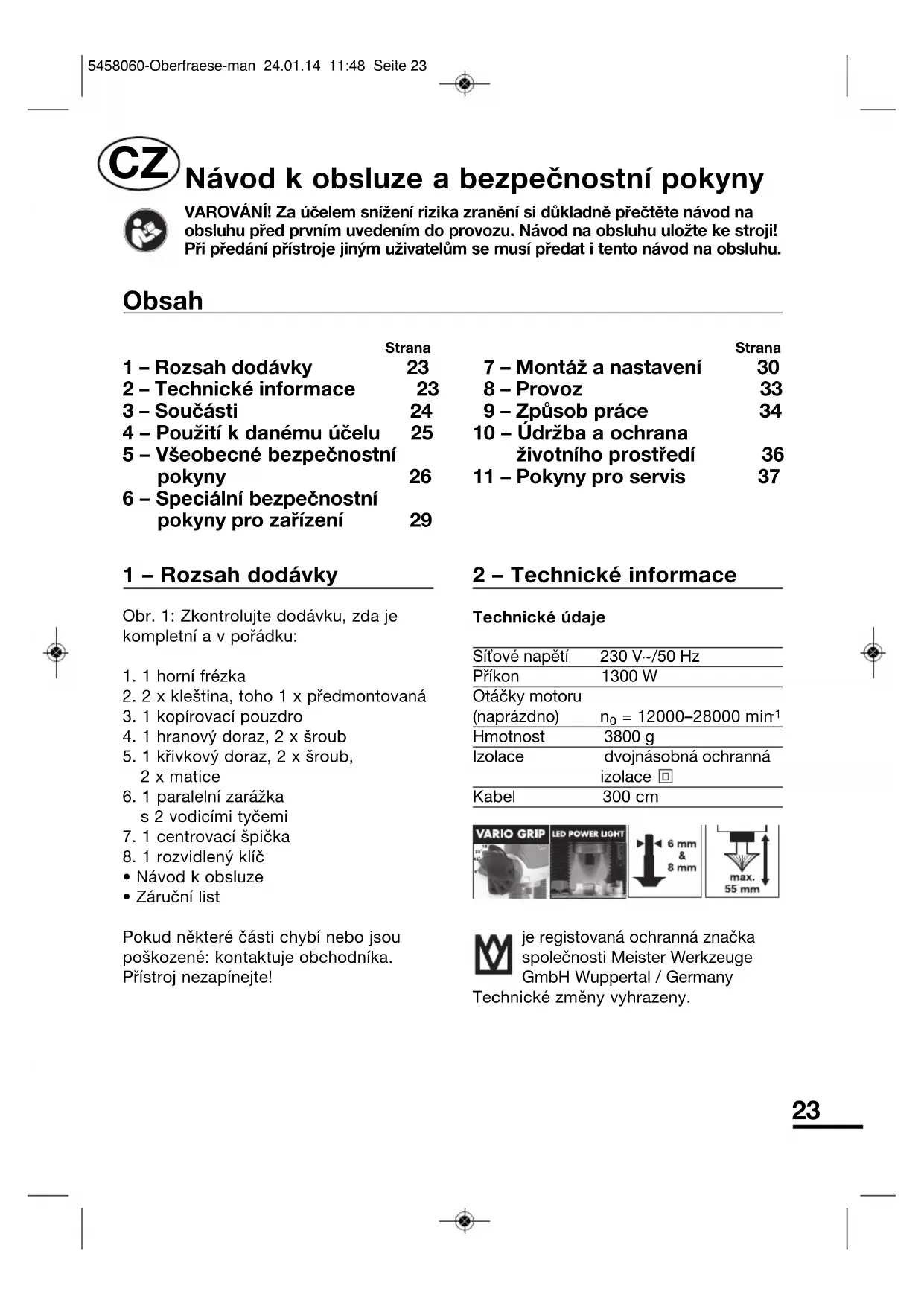 MOF 1300 - Frézka Meister Craft - Bezplatný návod k obsluze