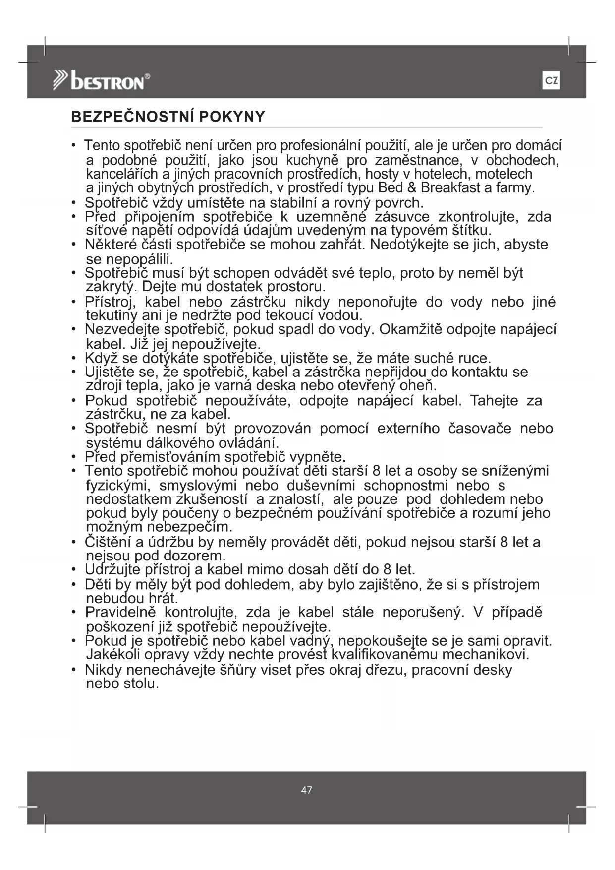 AOV45 - Trouba BESTRON - Bezplatný návod k obsluze