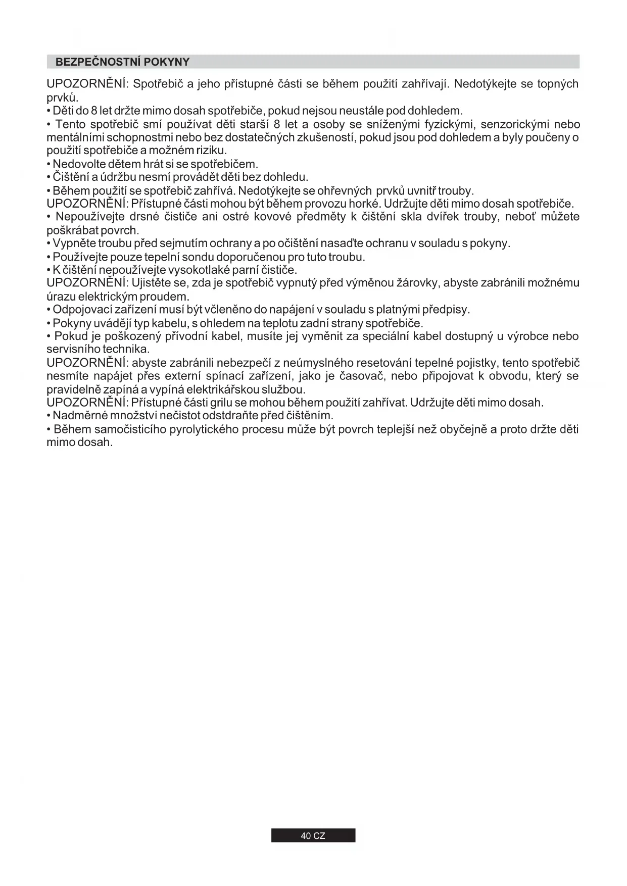 39 DE40 CZ UPOZORNĚNÍ: Spotřebič a jeho přístupné části se během použití zahřívají. Nedotýkejte se topných prvků.