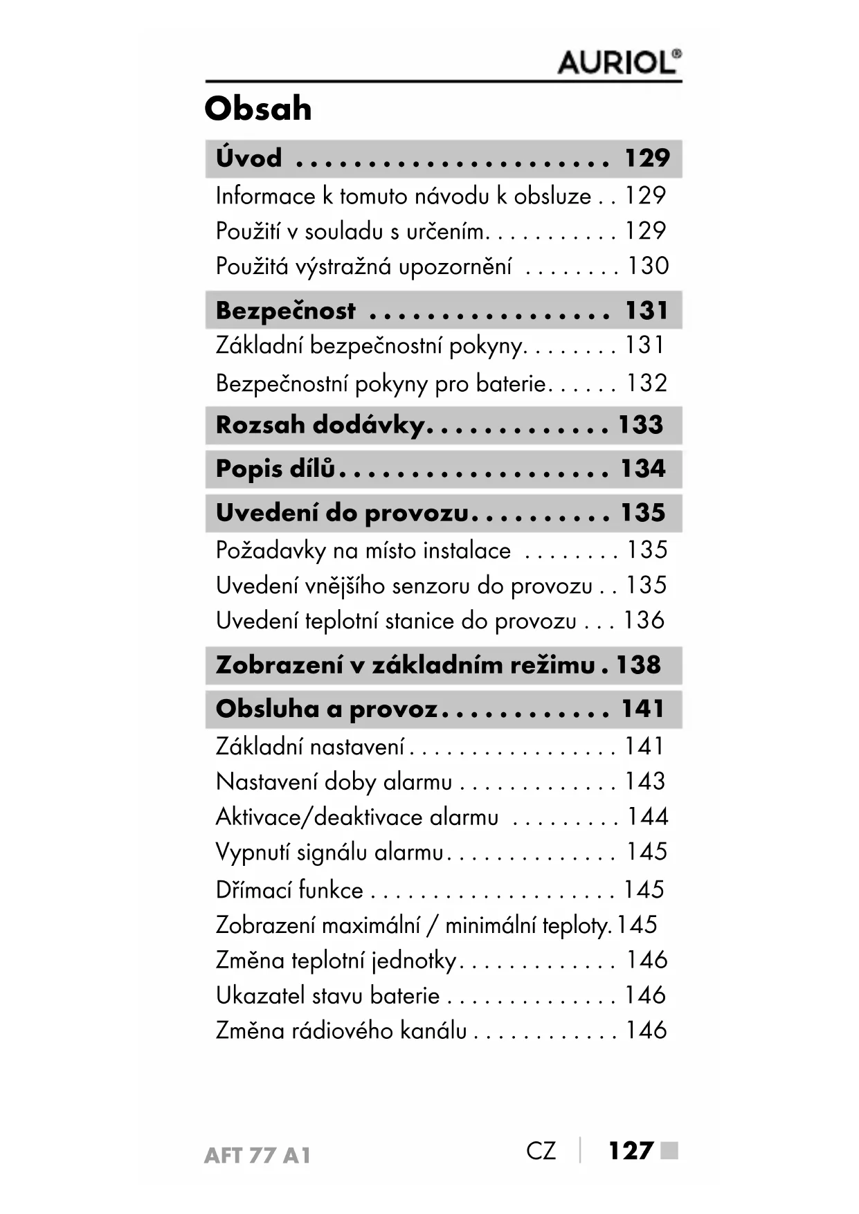 Najděte návod k zařízení zdarma AFT 77 A1 AURIOL ve formátu PDF.