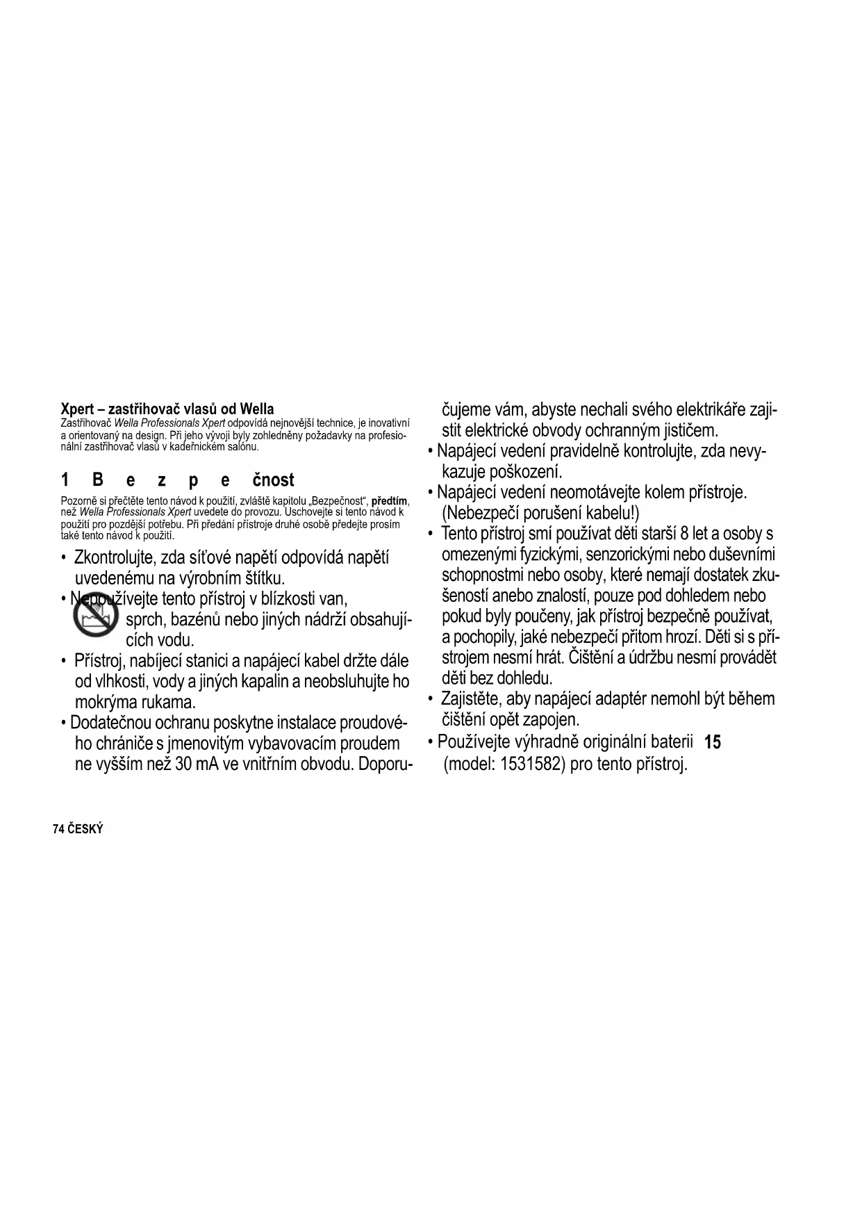- Používejte pouze originální baterii Wella 15, kterou si můžete objednat v zákaznickém centru Wella.