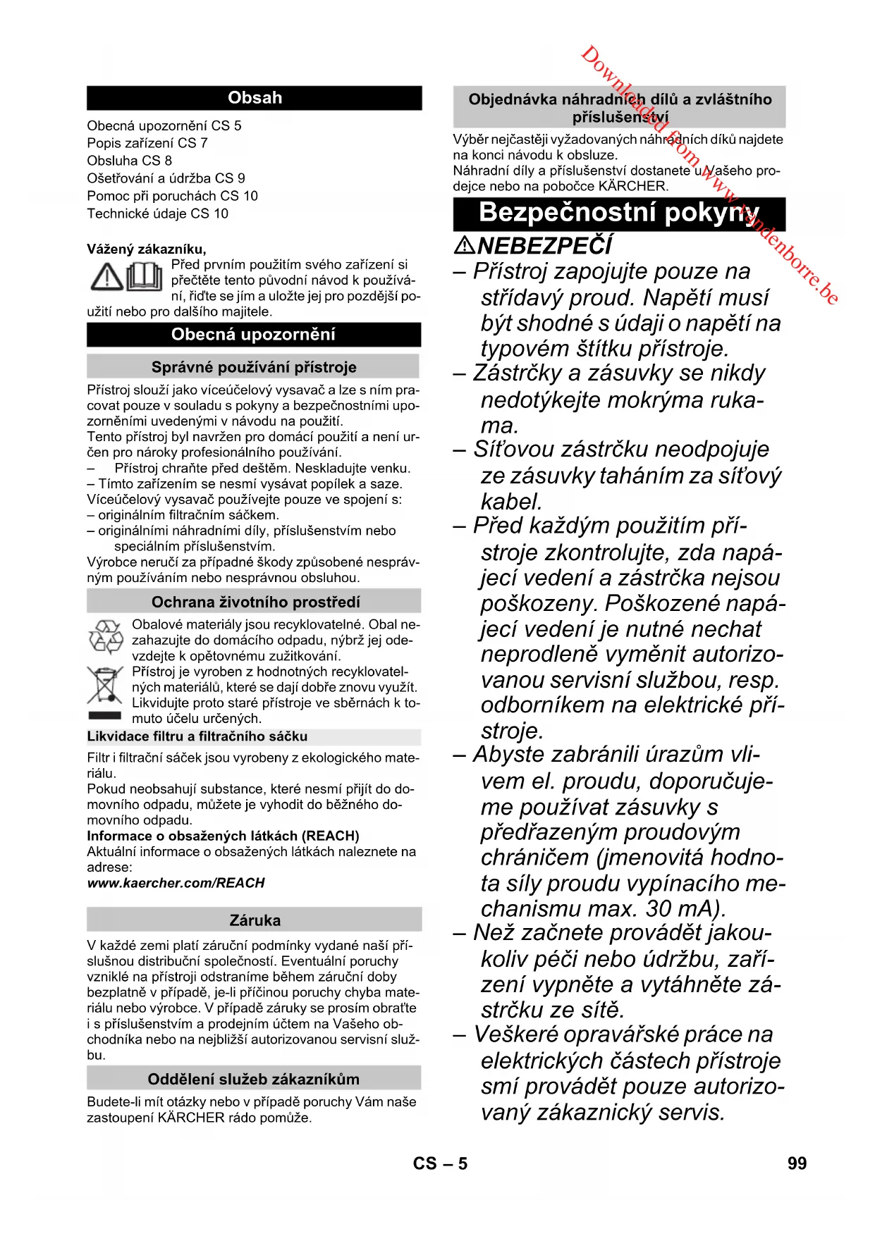 WD 5 Premium - Vysavač Kärcher - Bezplatný návod k obsluze