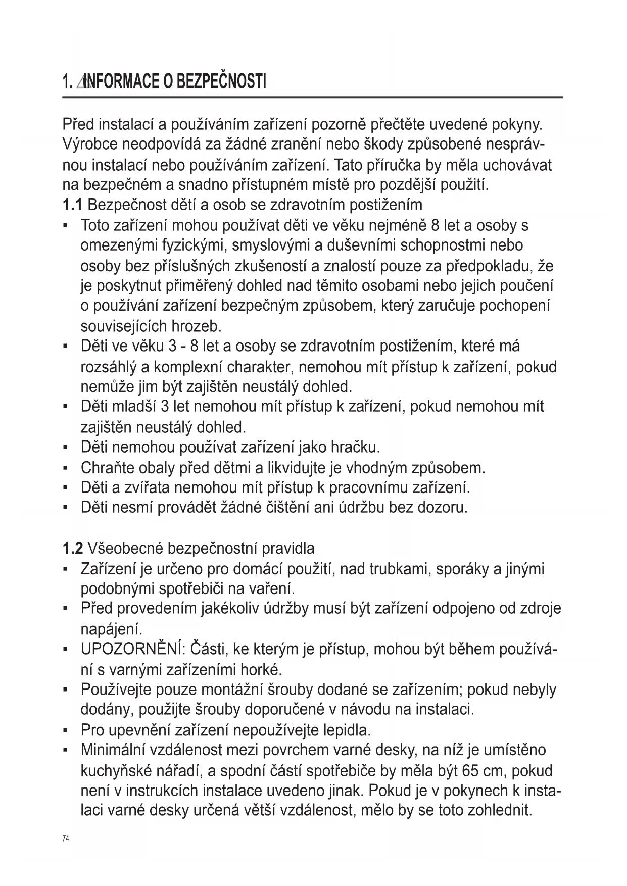 1.2 Všeobecné bezpečnostní pravidla