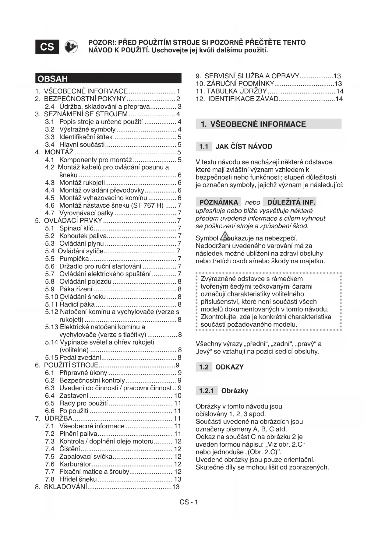 - Při použití stroje blízko silnice dávejte pozor na provoz.CS - 3 Chování