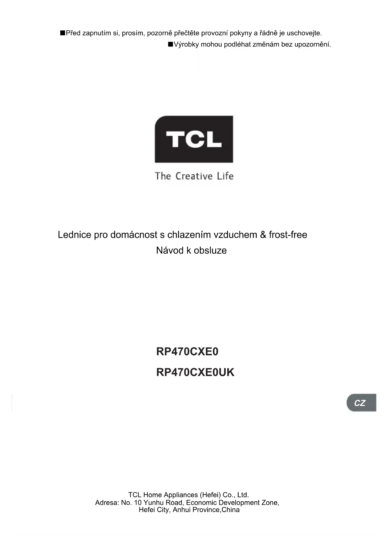 RP470CXE0 - Lednice TCL - Bezplatný návod k obsluze