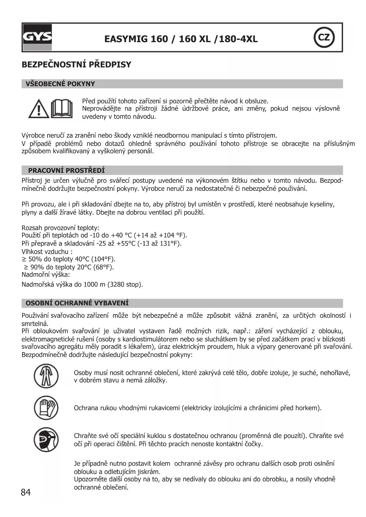 NÁVOD K OBSLUZE Easymig 160 XL GYS