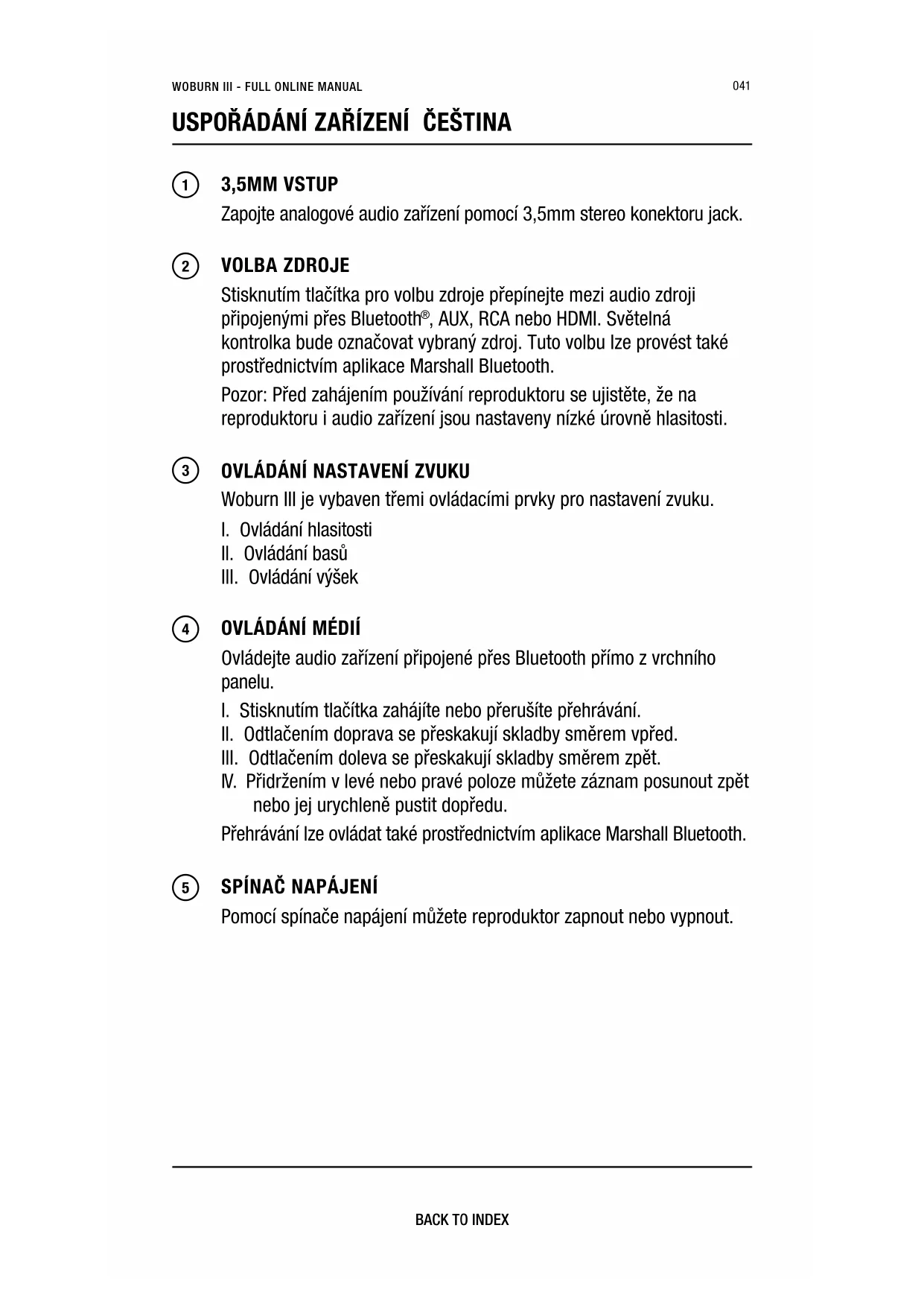 Woburn III - Reproduktor MARSHALL - Bezplatný návod k obsluze