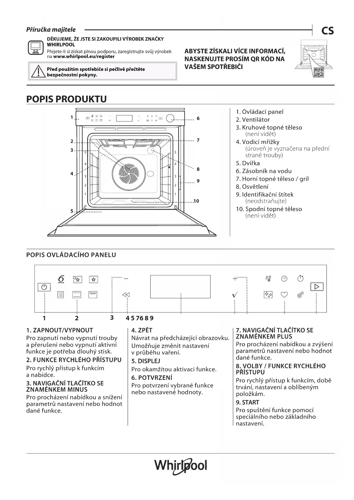 Před použitím spotřebiče si pečlivě přečtěte bezpečnostní pokyny. POPIS PRODUKTU