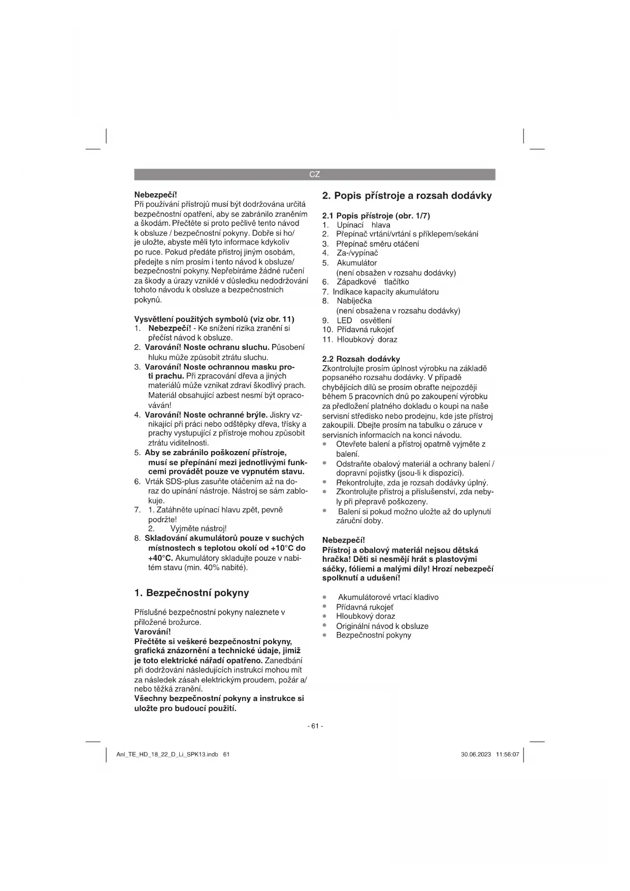 brací na ruce a paže, pokud se přístroj používá delší dobu nebo není řádně veden a udržován. Anl_TE_HD_18_22_D_Li_SPK13.indb 62Anl_TE_HD_18_22_D_Li_SPK13.indb 62 30.06.2023 11:56:0730.06.2023 11:56:07CZ