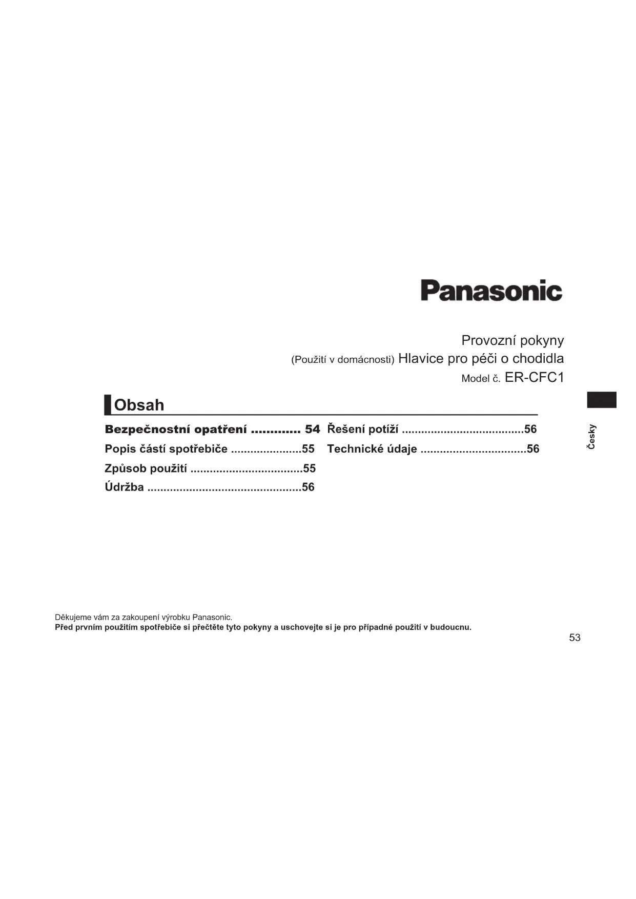 NÁVOD K OBSLUZE ERCFC1 PANASONIC